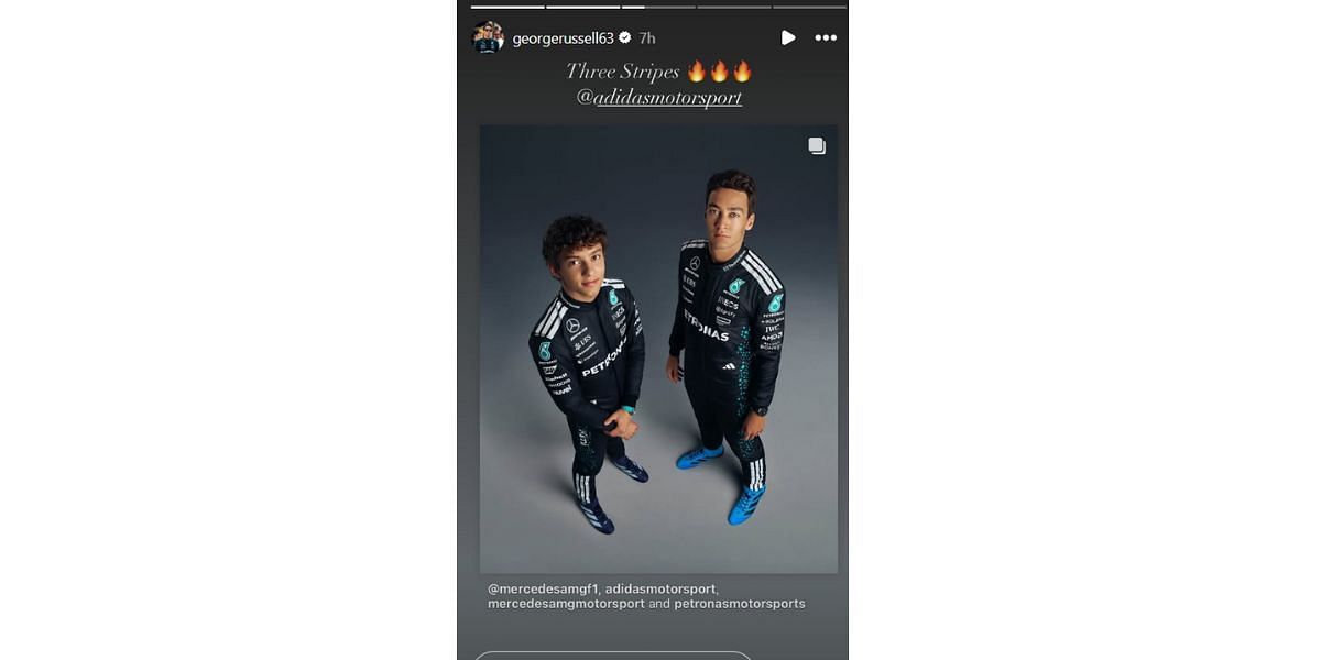 On his Instagram Story, George Russell reposted the team's post featuring him and Kimi Antonelli in the team's new kits and gave a two-word reaction, saying: