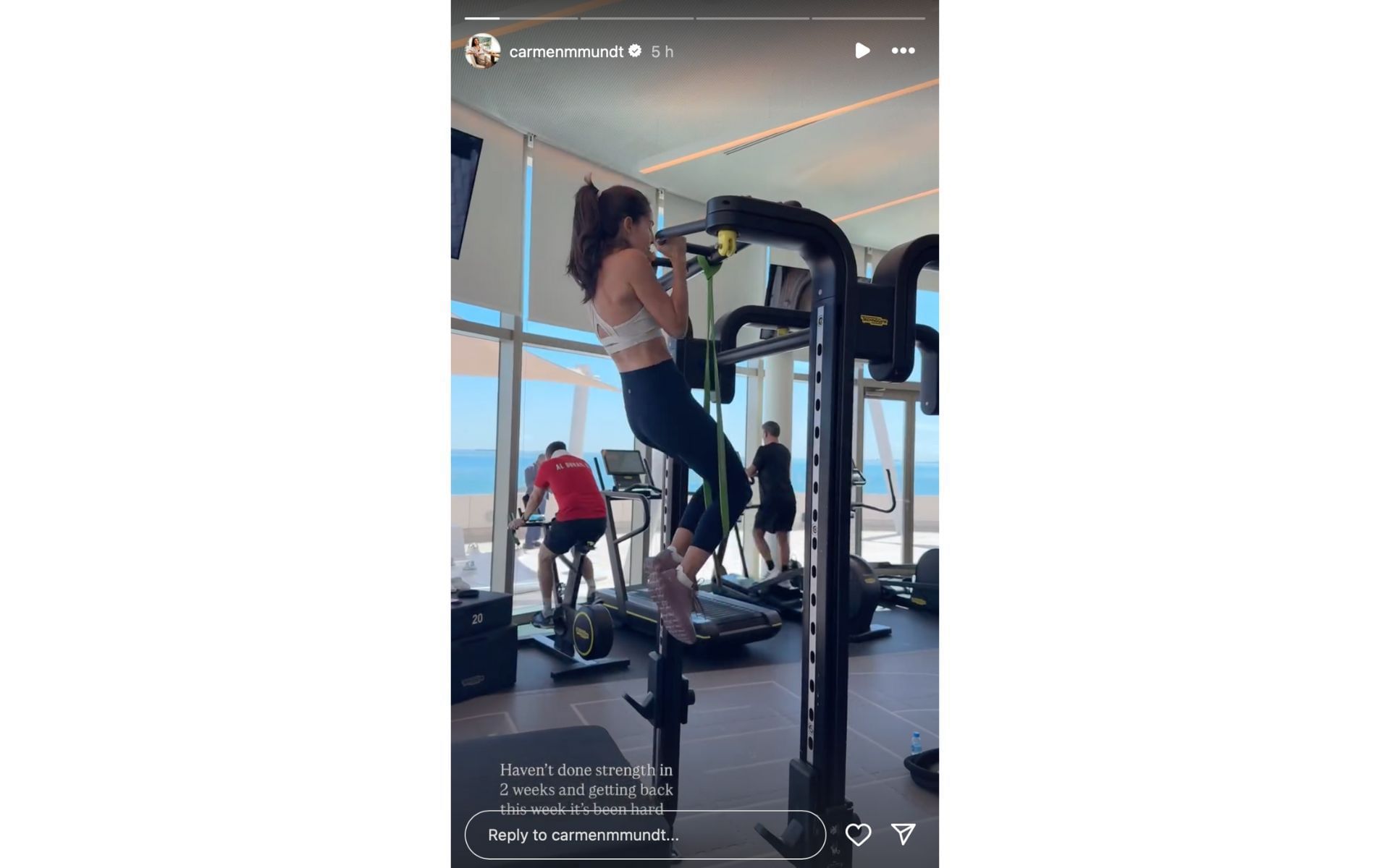 F1 drivers are known for their intense workout sessions, but their girlfriends are also not behind them, as George Russell's partner Carmen Mundt showcased on her Instagram story on Thursday. The 27-year-old was involved in a back workout session and posted a video in which she was doing pull-ups while being assisted with a pull-up band.