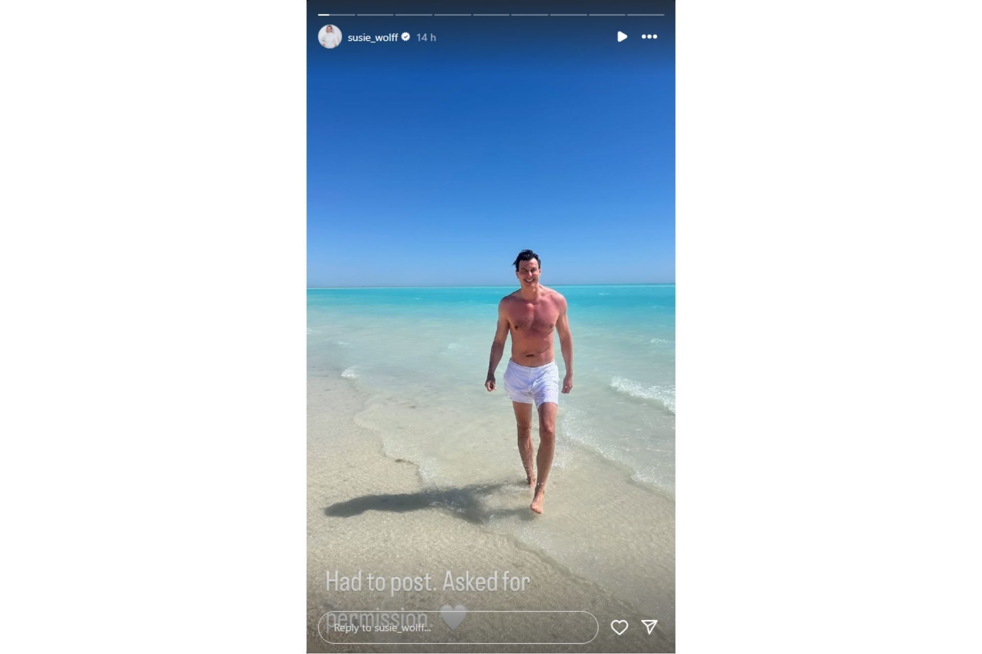 Susie Wolff posted a picture of her husband, Mercedes team principal Toto Wolff, as the couple spent a few days vacationing in Saudi Arabia right before the F1 Grand Prix in Jeddah. He could be seen walking around the beaches of the country dressed in nothing but his boxer shorts.