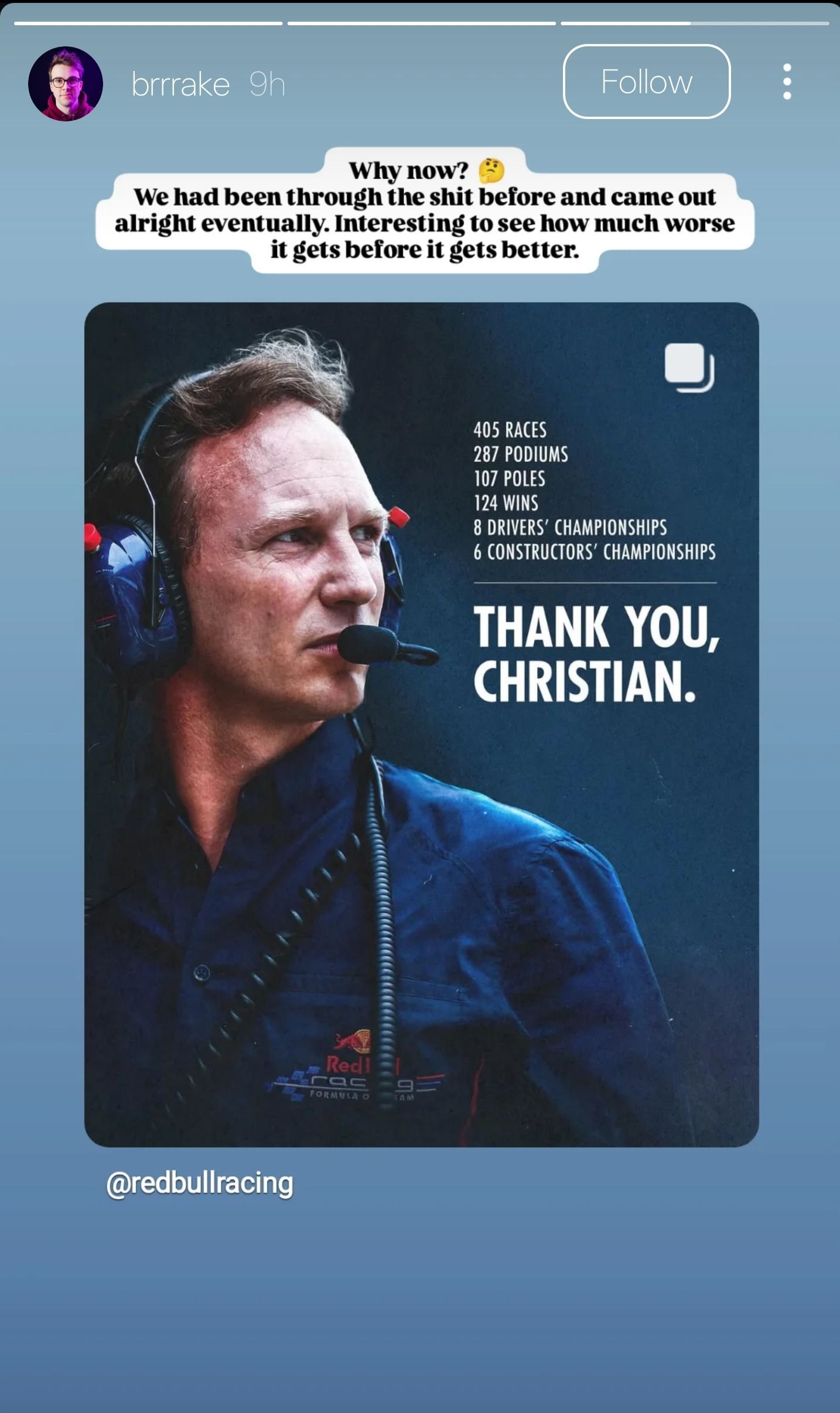 One among them was Hinsey, who was also shocked. Sharing Red Bull Racing's post on his social media, the former Red Bull man questioned the Austrian team. writing in his story, he stated: