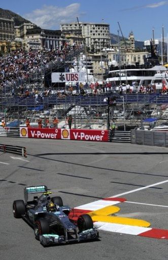 Mercedes’ German driver Nico Rosberg during the first practice session at the Circuit de Monaco in Monte Carlo on May 23, 2013. Rosberg laid down an early marker on Thursday when he topped the times in the opening free practice for this weekend’s 71st Monaco Grand Prix.
