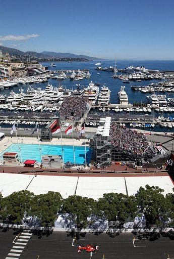 Ferrari’s Brazilian driver Felipe Massa drives during the second practice session at the Circuit de Monaco in Monte Carlo on May 23, 2013 ahead of the Monaco Formula One Grand Prix. Nico Rosberg maintained his and the Mercedes team’s utter domination of one-lap Formula One speeding by topping the times again in Thursday afternoon’s second free practice session for Sunday’s Monaco Grand Prix.