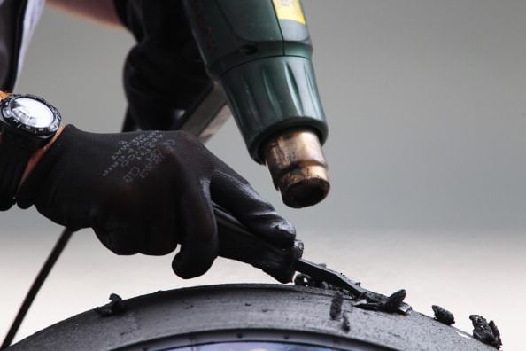 A Pirelli technician works on a tyre during practice for the European Formula One Grand Prix in 2011. (Getty Images)