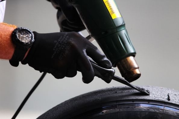 A Pirelli technician works on tyres in the paddock during practice for the European Formula One Grand Prix at the Valencia Street Circuit on July 24, 2011, in Valencia, Spain. (Getty Images)