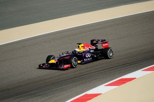 Red Bull Racing’s German driver Sebastian Vettel drives at the Bahrain International Circuit in Manama on April 21, 2013 during the Bahrain Formula One Grand Prix. Vettel won the race.