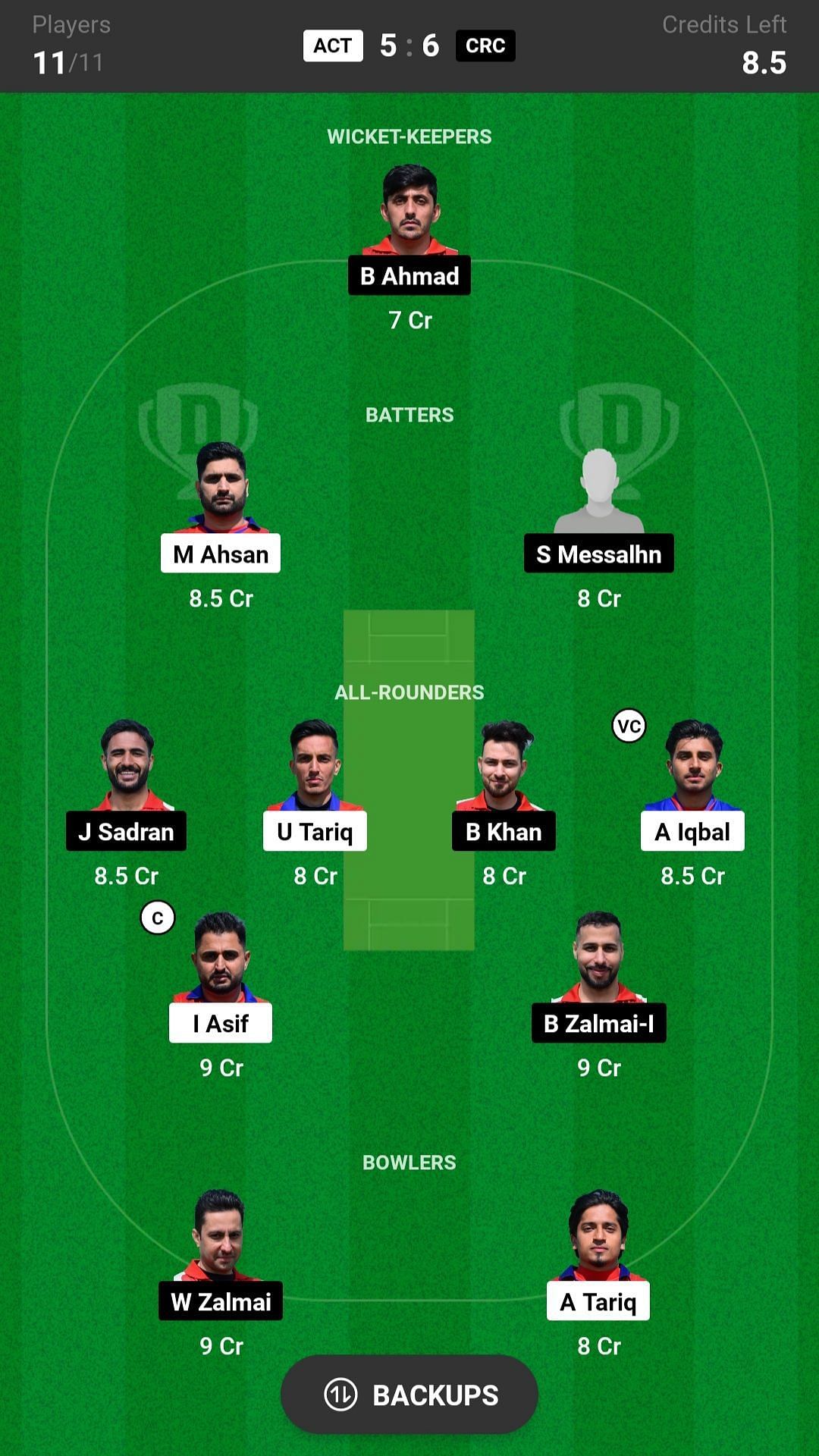 A Iqbal and I Asif are the best all-rounder picks for the Dream11 team as they are batting in the top order and also completing their quota of overs. B Zalmai is another good pick for today's Dream11 match.