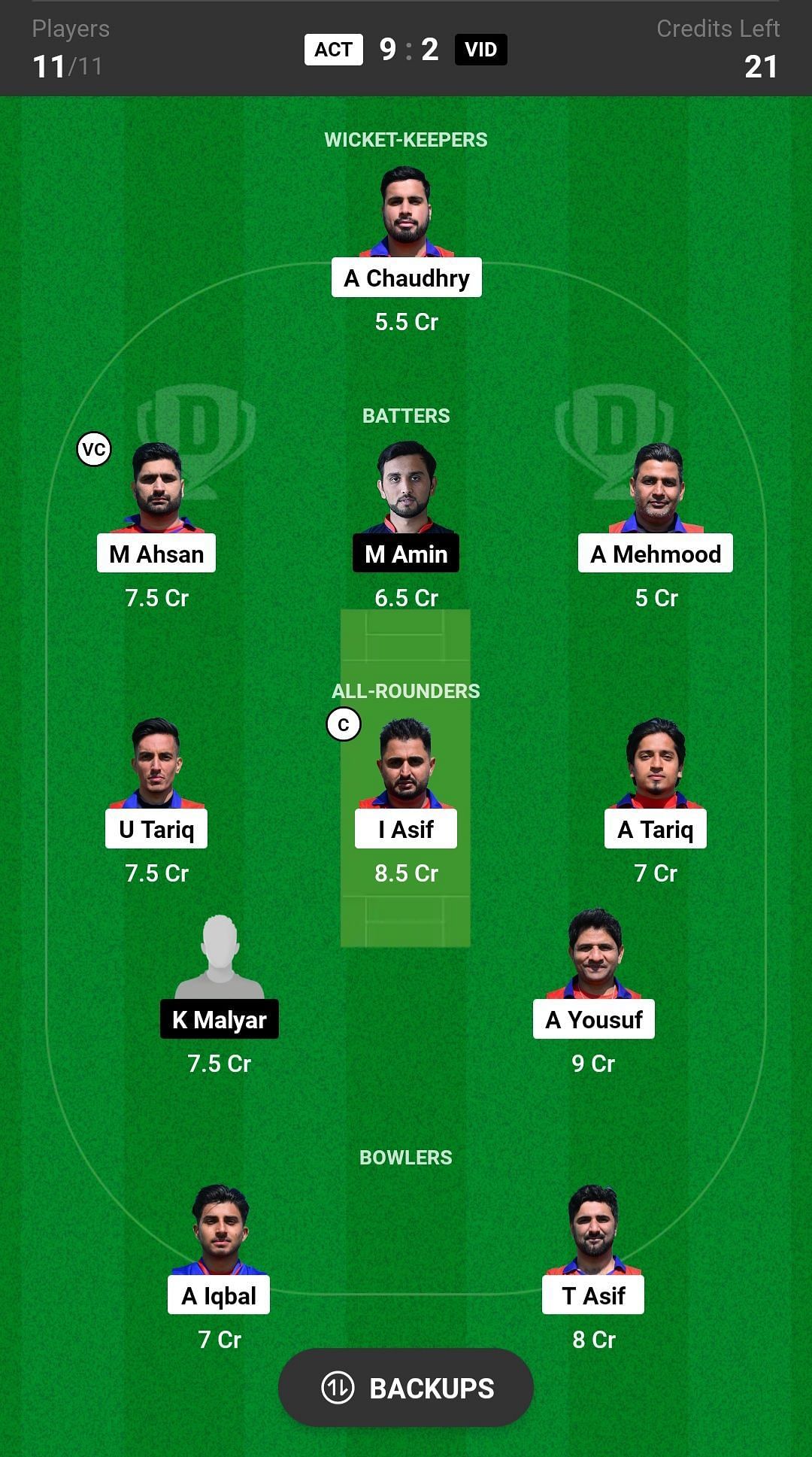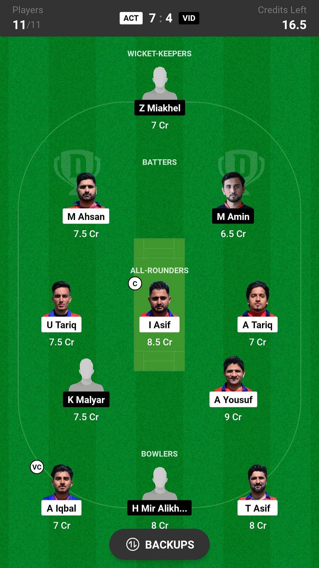 I Asif and A Tariq are the best all-rounder picks for the Dream11 team as they are batting in the top order and also completing their quota of overs. A Yousuf is another good pick for today's Dream11 match.