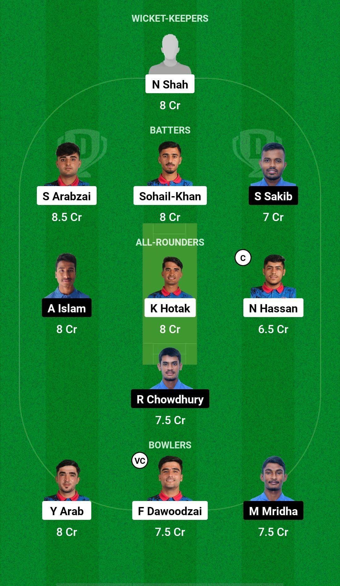 Batters: Suliman Arabzai, Sohail Khan, Sharear Sakib
