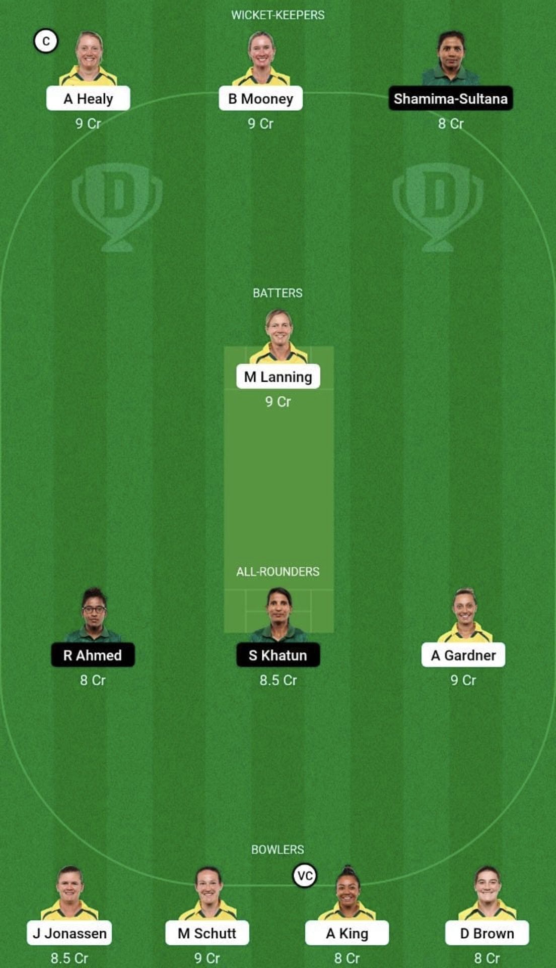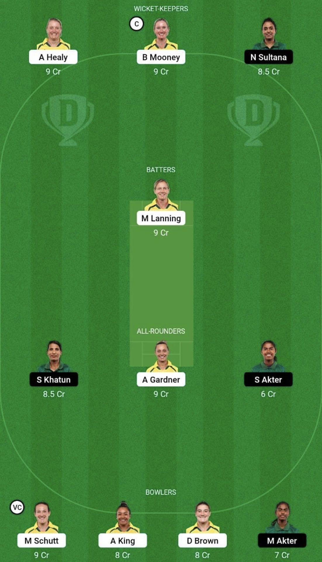 Wicketkeepers: Alyssa Healy, Beth Mooney (c), Nigar Sultana