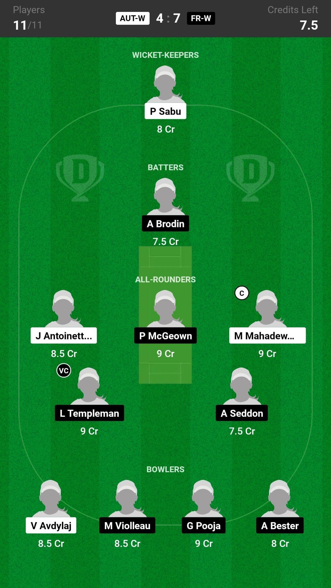 Austria Women vs France Women Dream11 Prediction Today, Grand League