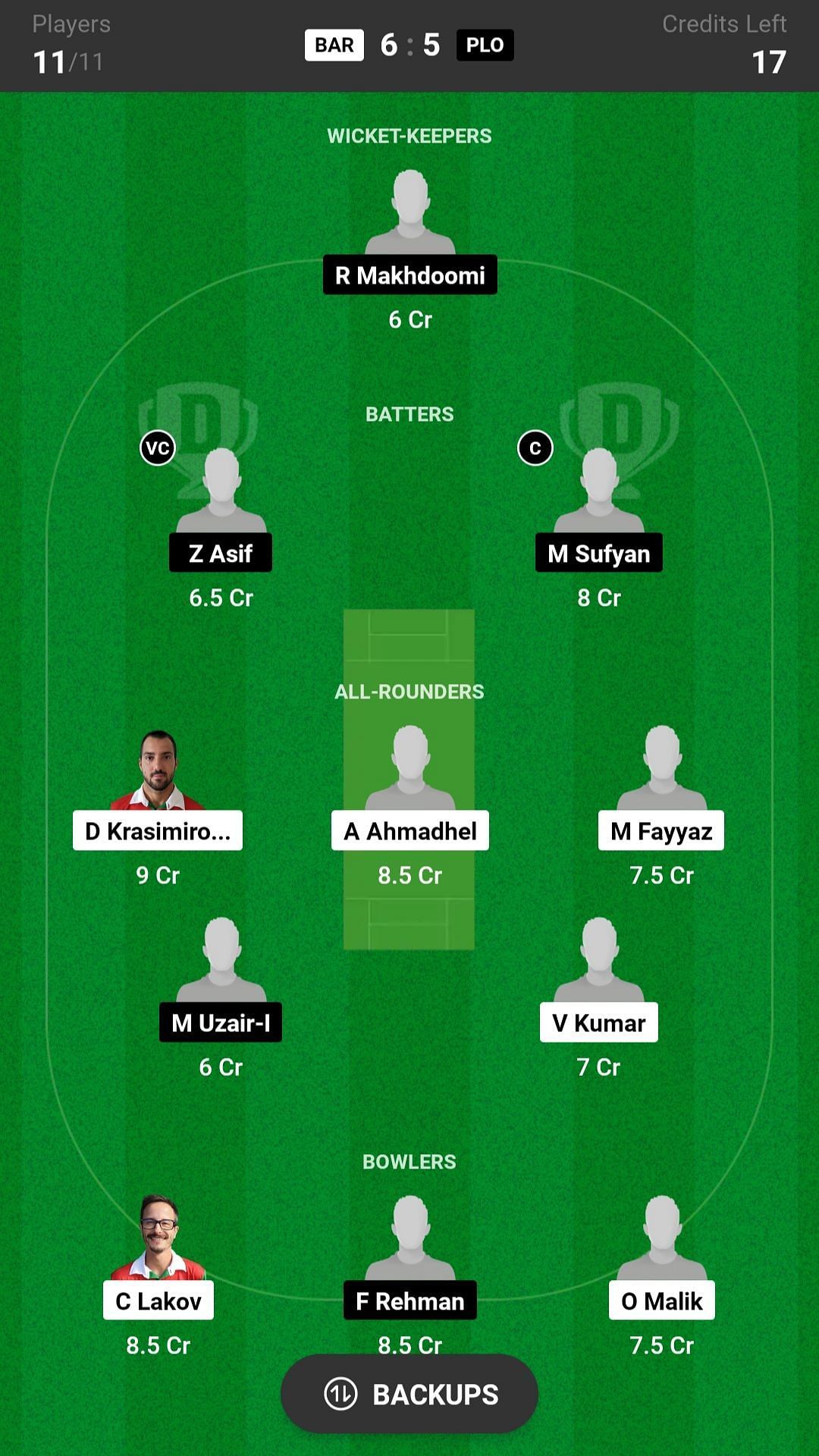 Z Asif and M Sufyan are the two best batsmen picks for the Dream11 team. U Farooq played exceptionally well in the last series, so he is also a good pick for today's Dream11 fantasy team.