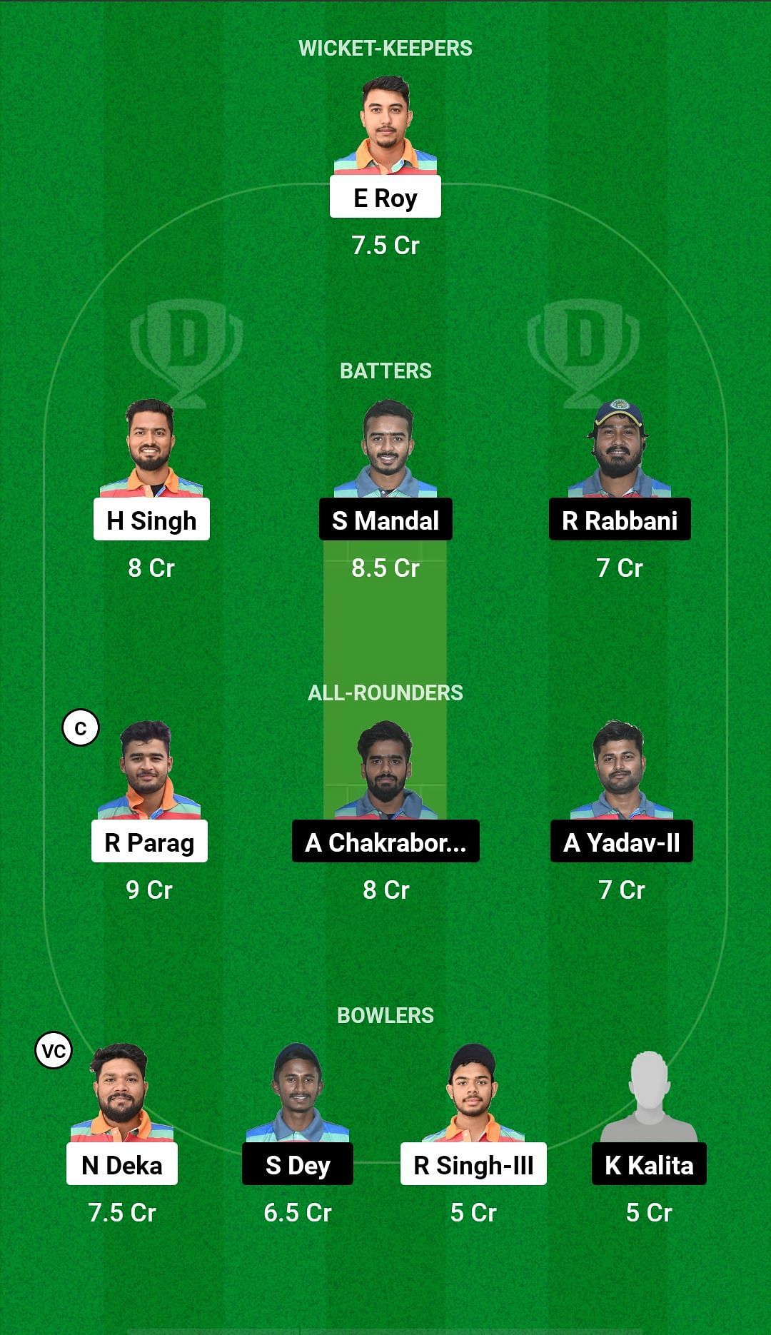 Bowlers: Jitumoni Kalita, Rohit Singh, Nipan Deka, Saurav Dey.