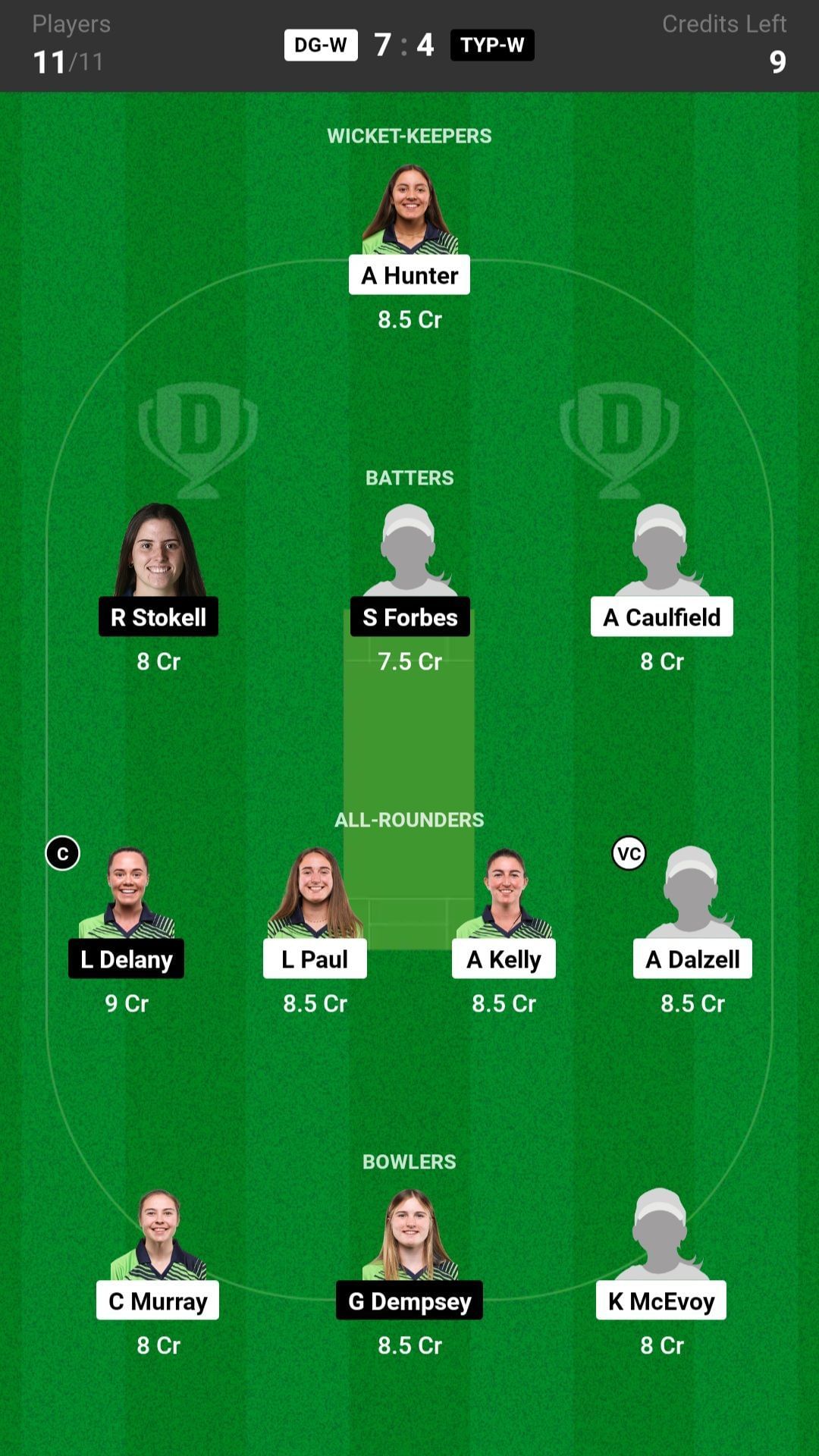 A Caulfield and R Stokell are the two best batters to pick for the Dream11 team. S Forbes played exceptionally well in the last series, so she is also a good pick for today's Dream11 fantasy team.