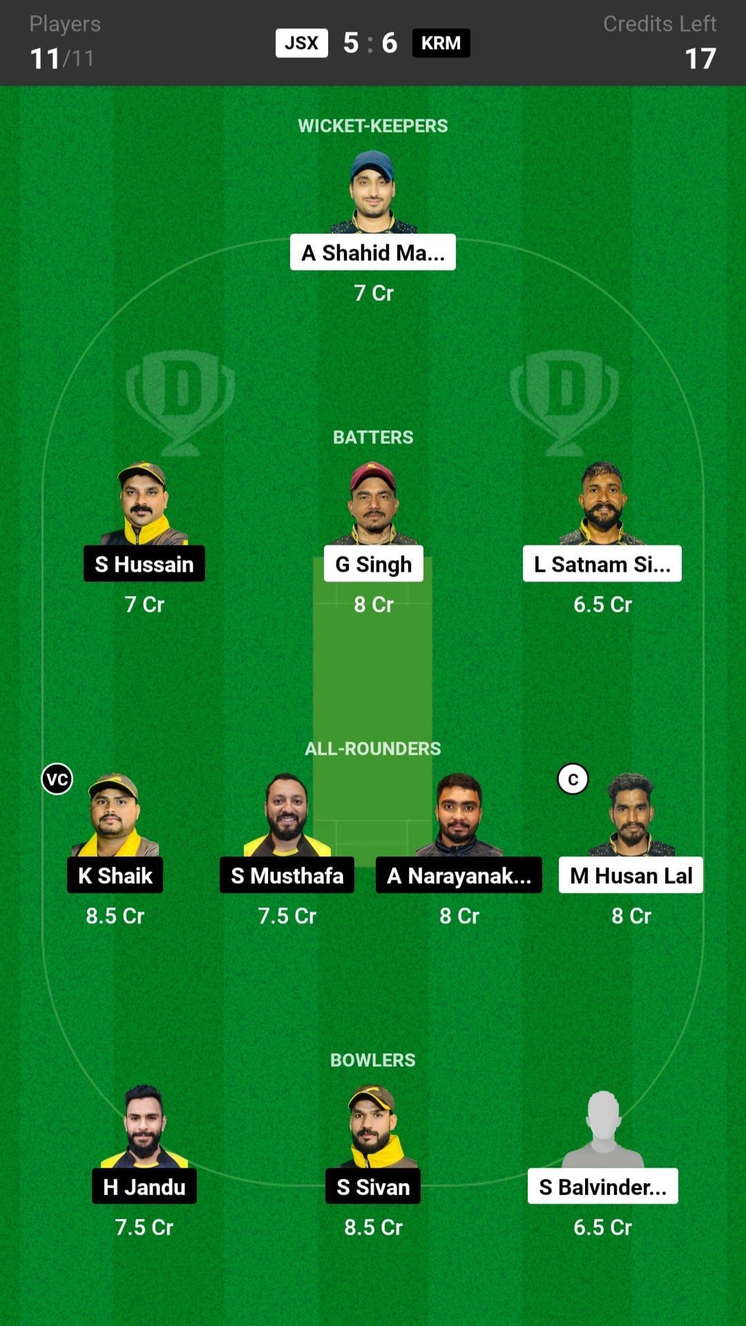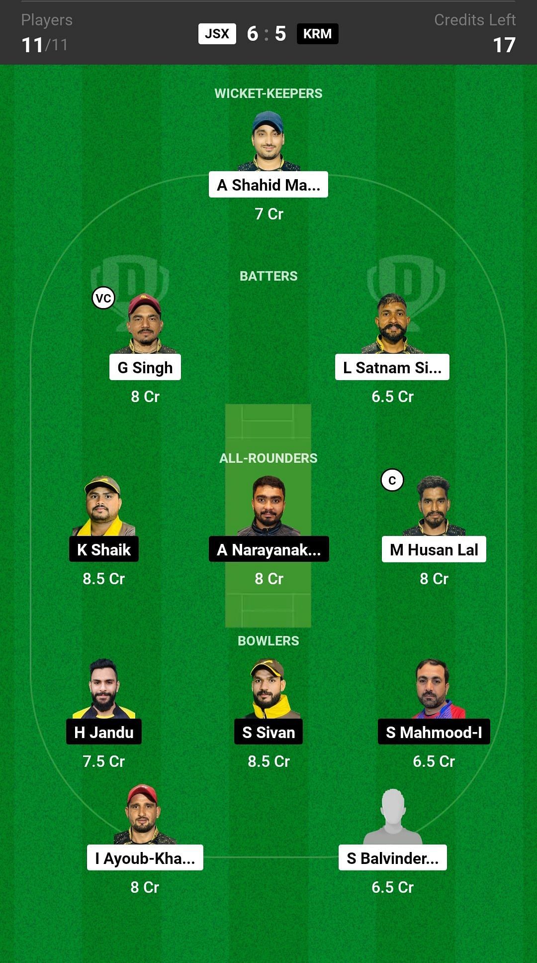 JK Super XI vs KRM Panthers Dream11 Prediction Today, Grand League