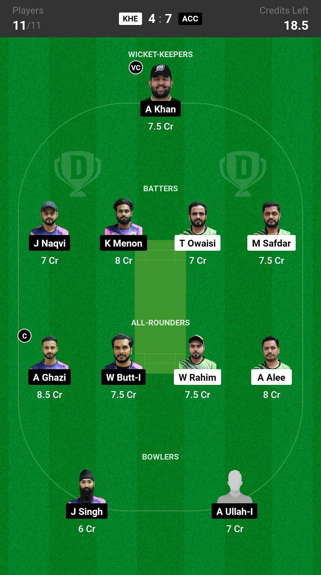 Khandan XI vs Arqum Cricket Club Dream11 Prediction Today, Grand League