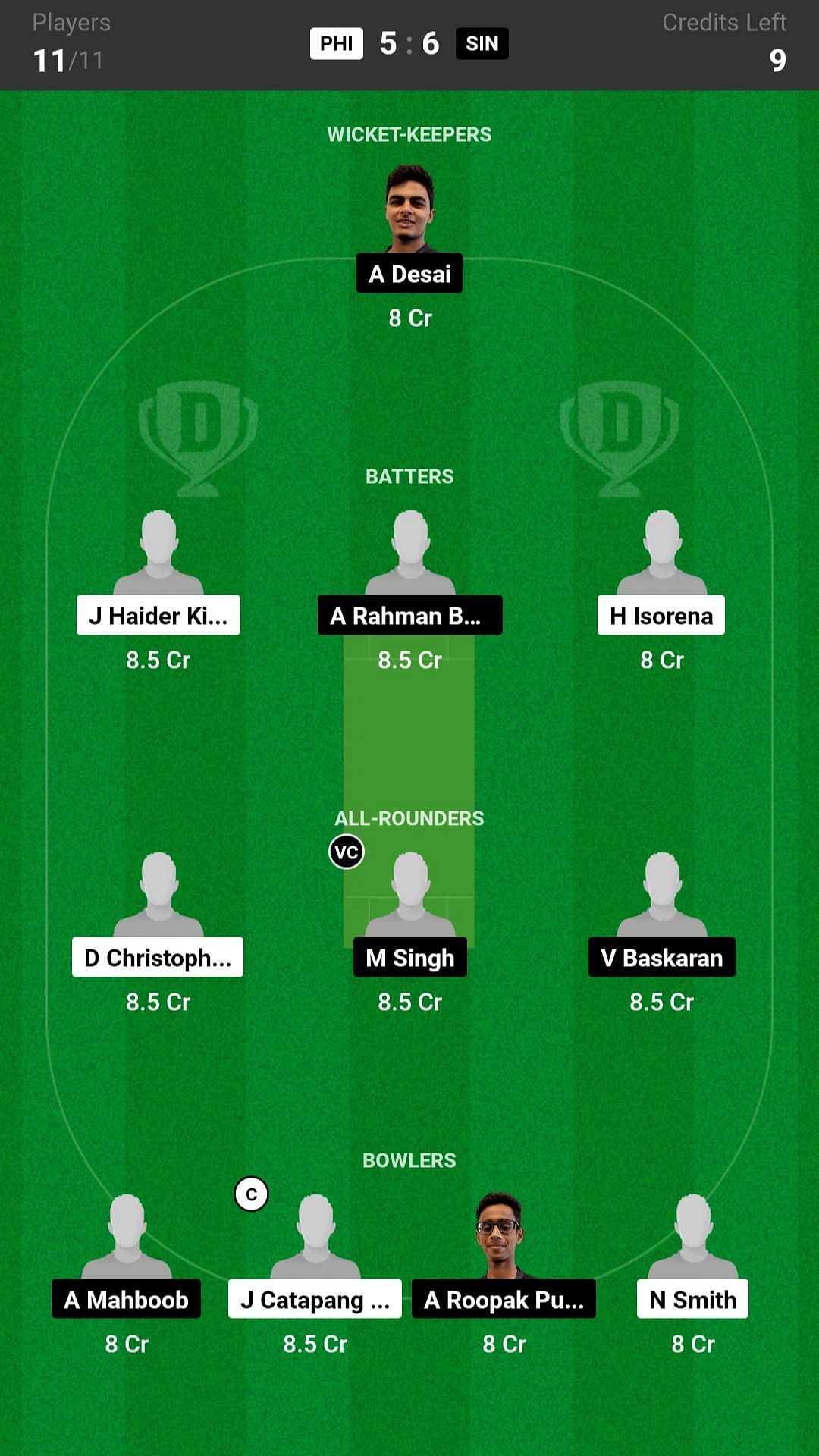 Since the pitch is well-balanced, you can make M Singh as he will bat in the middle order and bowl in the death overs. You can make him the captain of the grand league teams.