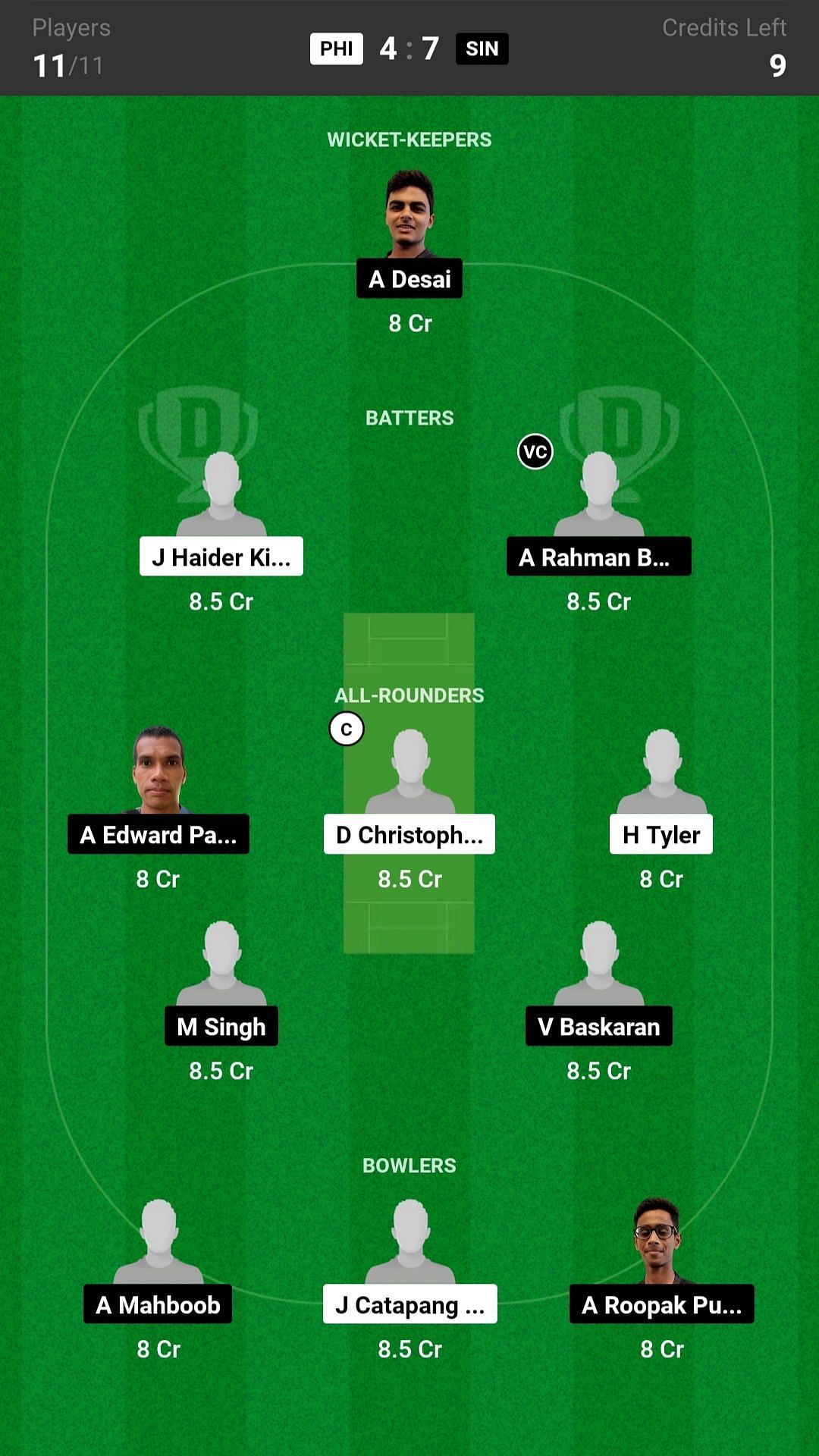 Philippines vs Singapore Dream11 Prediction Today, Grand League