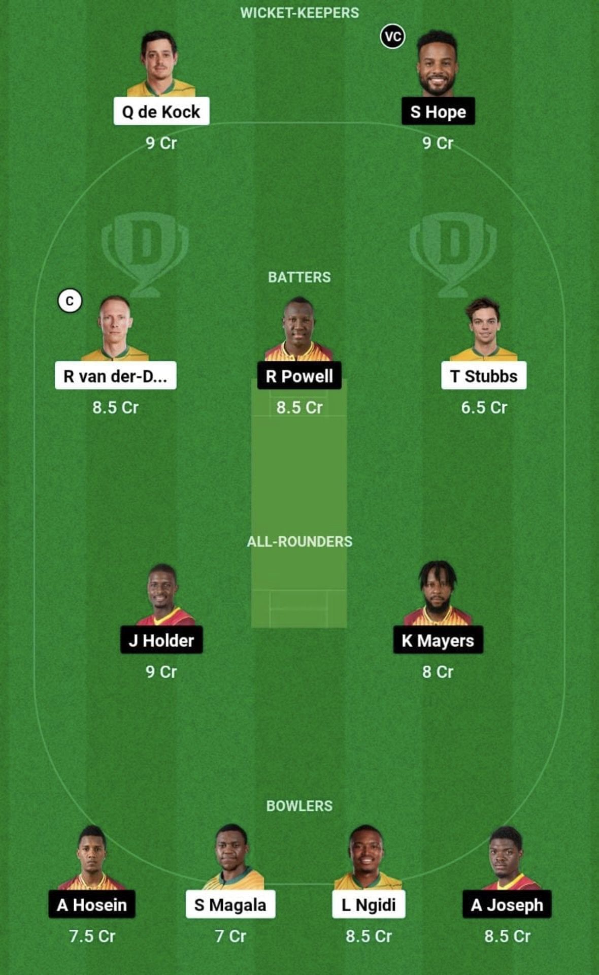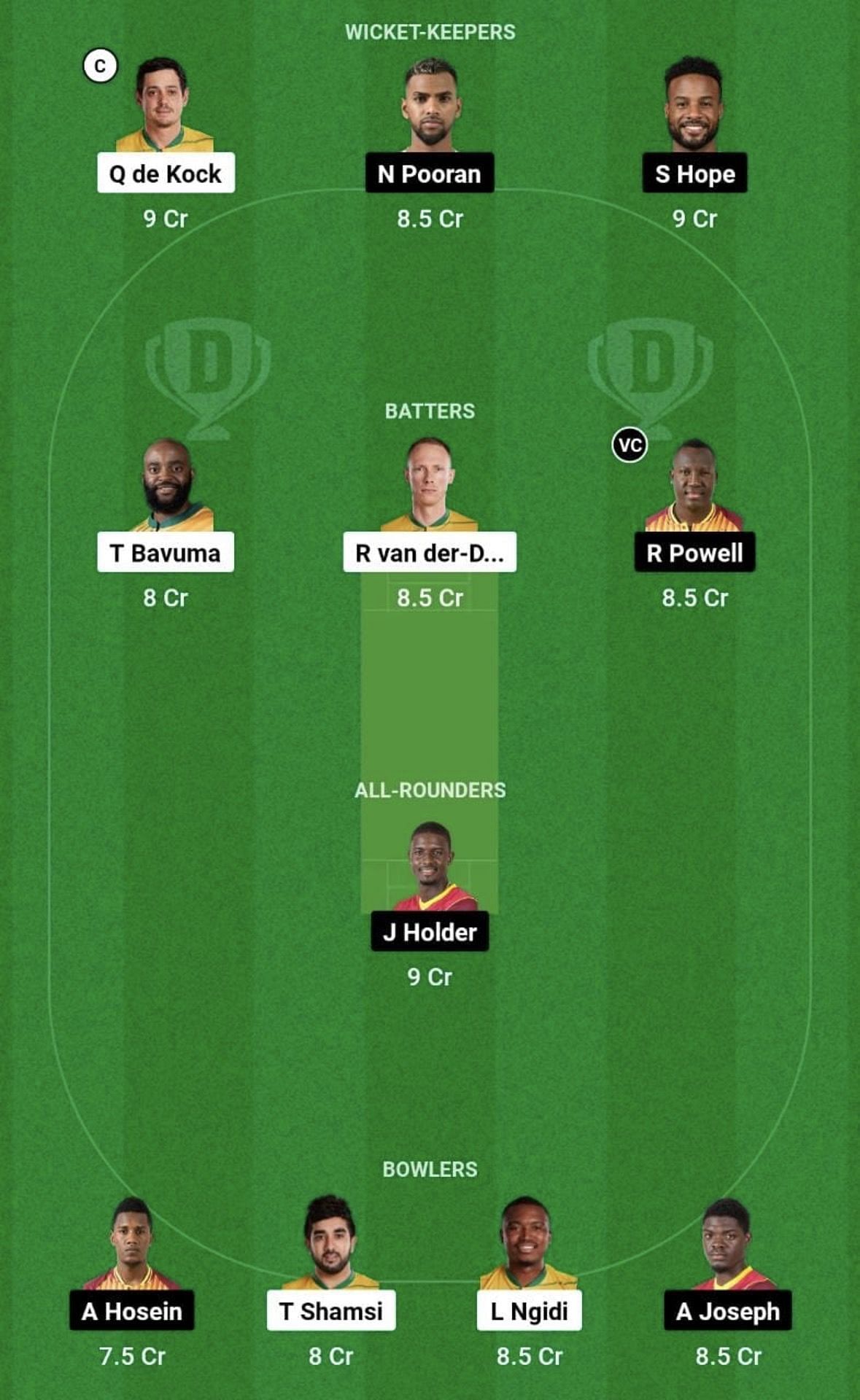 SA vs WI match captain and vice-captain choices