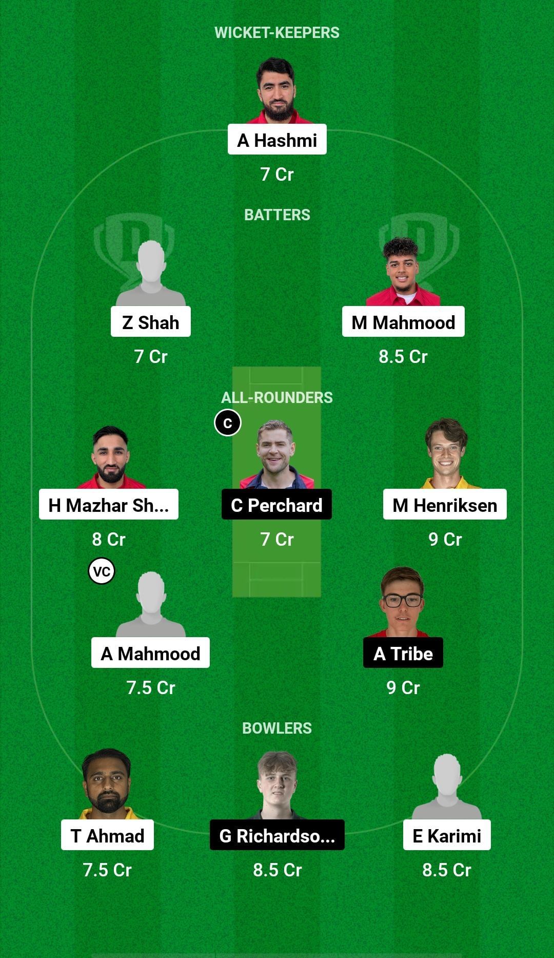 All-rounders: Mads Henriksen, Charles Perchard, Asa Tribe, H Mazhar Shah, Abdullah Mahmood, William Perchard
