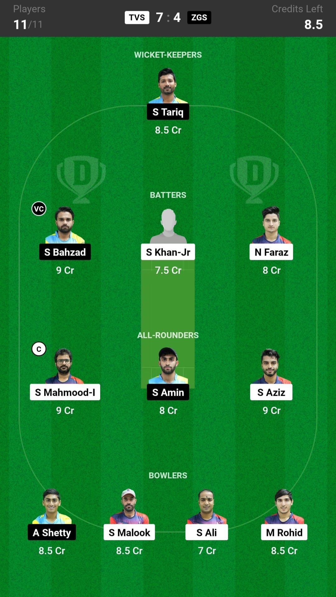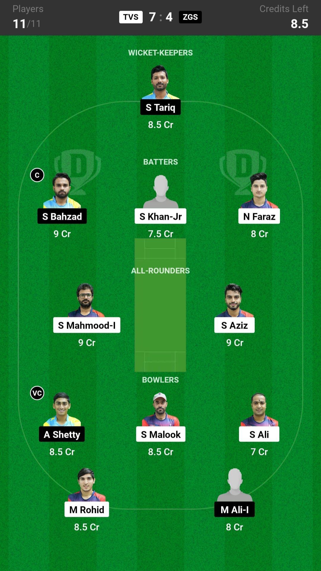 TVS vs ZGS match captain and vice-captain choices