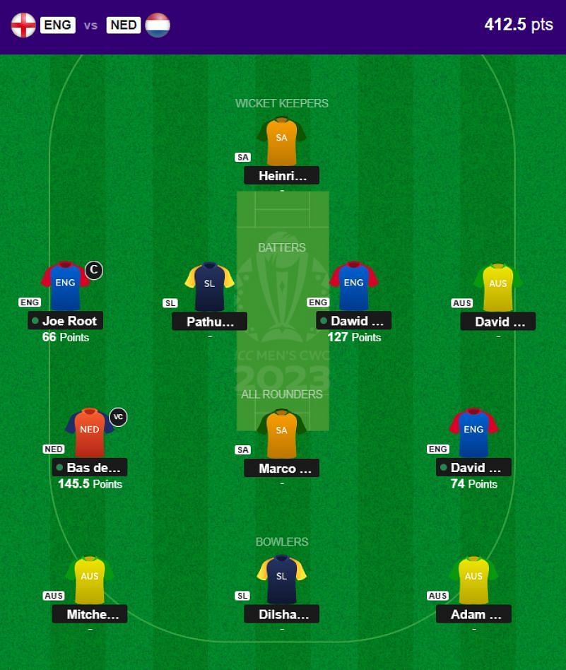 Captain: Joe Root. | Vice-captain: Bas de Leede.