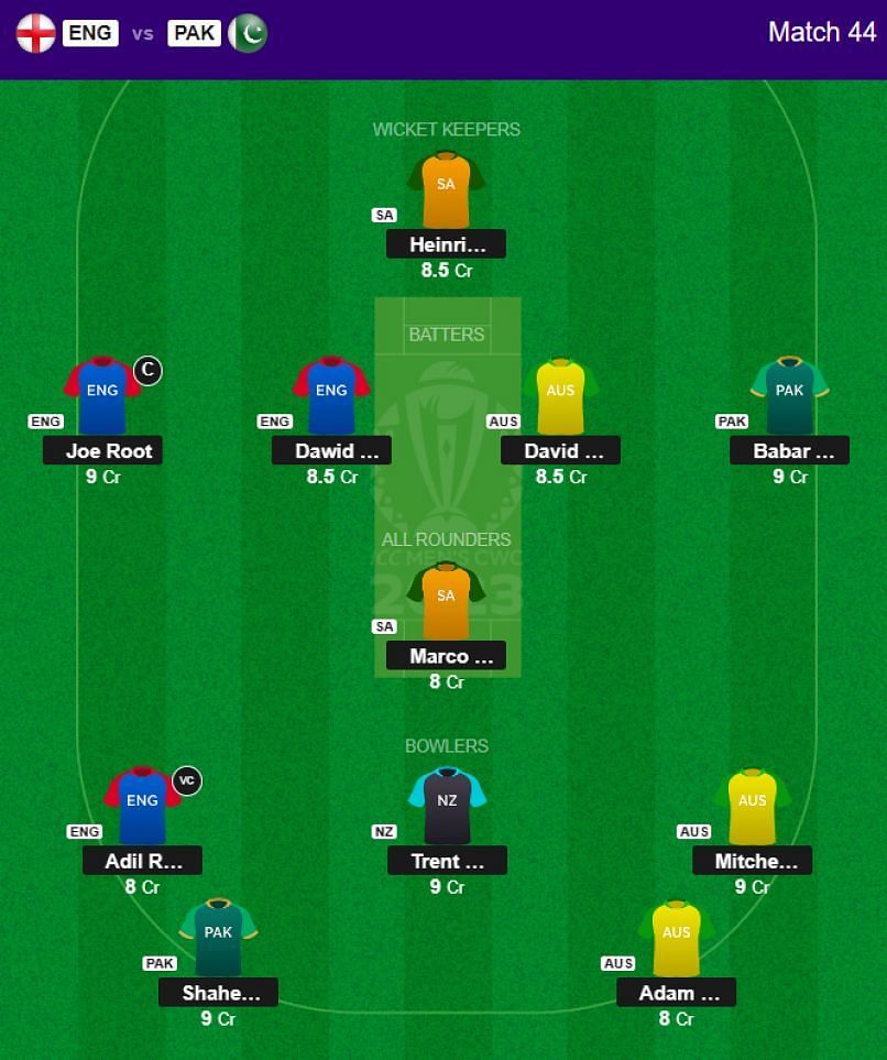 2023 World Cup Fantasy - Best Fantasy XI for Match 44 -