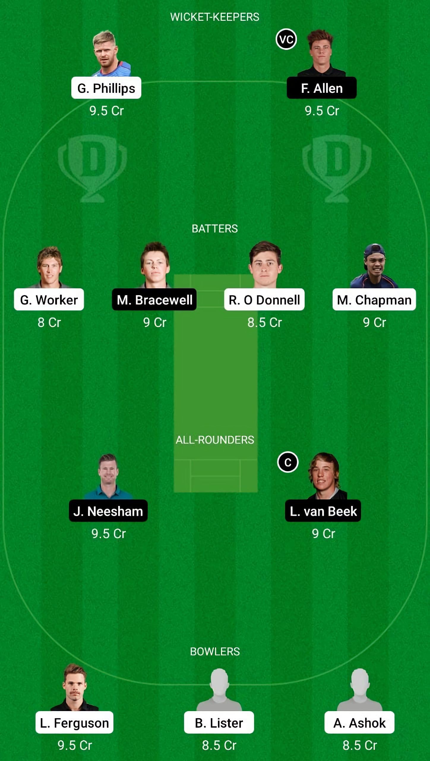 Fantasy Suggestion #1: Finn Allen, Glenn Phillips, Michael Bracewell, Mark Chapman, George Worker, Logan van Beek, Jimmy Neesham, Rachin Ravindra, Ben Lister, Adithya Ashok