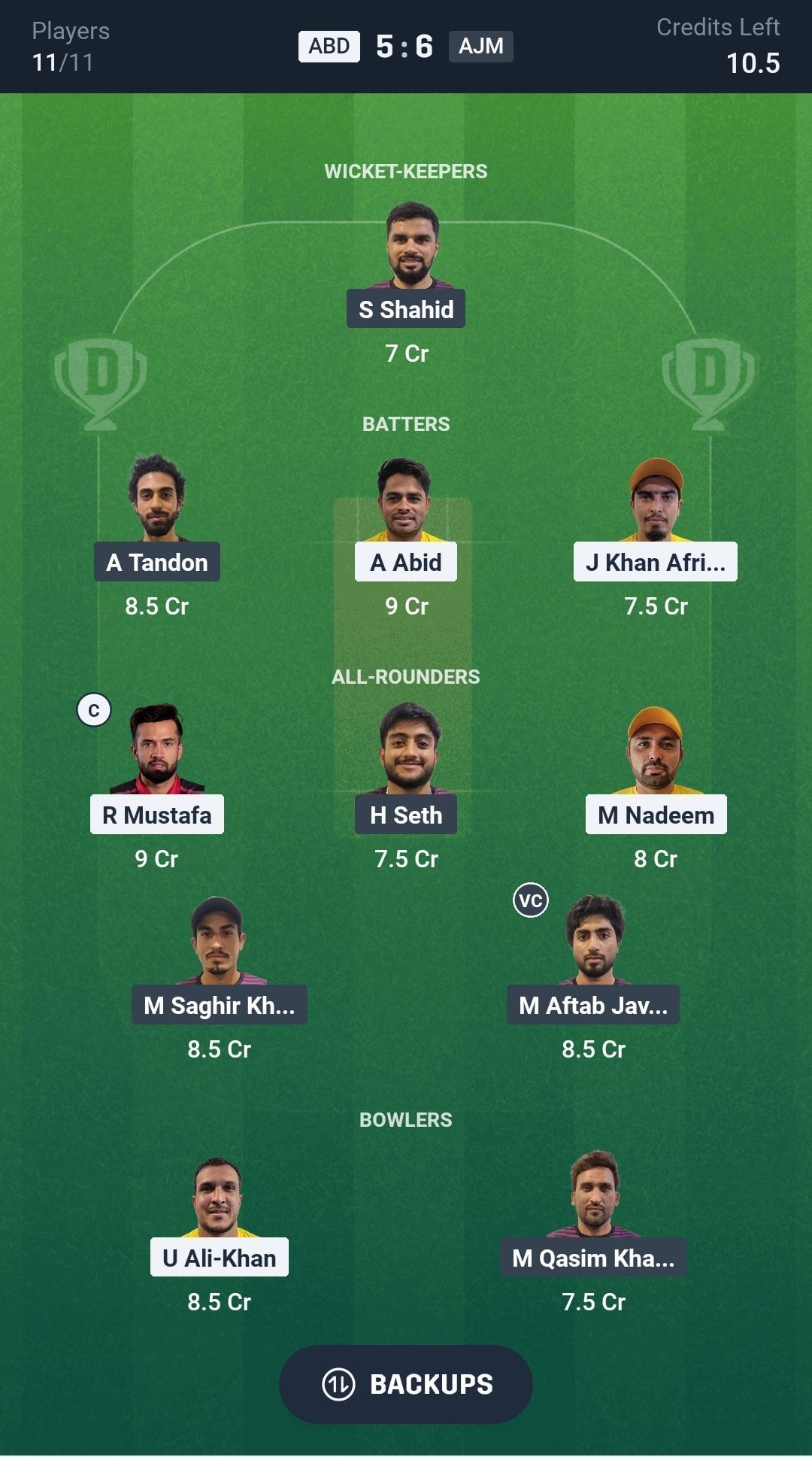 M Aftab is one of the most crucial picks from the Ajman squad. He is in top-notch form and can once again perform well at this venue. He will bat in the middle order and complete his quota of overs. He has smashed 29 runs and taken three wickets in the last three matches.