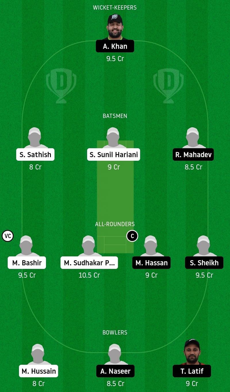 Fantasy Suggestion #1: Adnaan Khan, Soorya Sathish, Sahil Hariani, Rudra Madhav, Mazhar Bashir, Midhun Pattlikkadan, Muhammad Hassan, Shahrukh Ahmed Sheikh, Mudassir Hussain, Ali Naseer, Tahir Latif