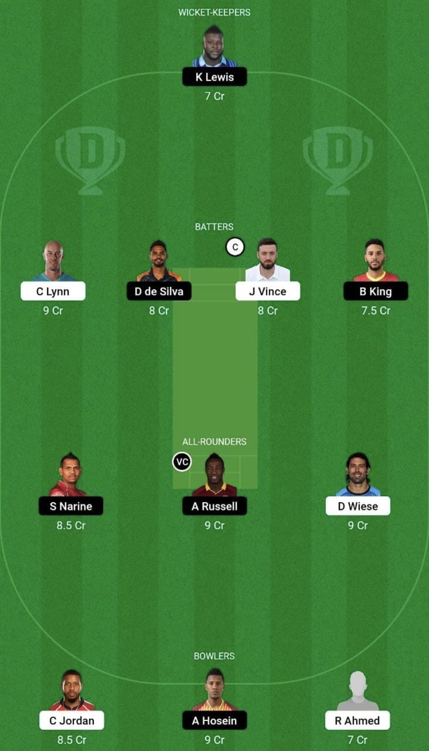 Batters: Chris Lynn, James Vince (c), Dhananjaya de Silva, Brandon King