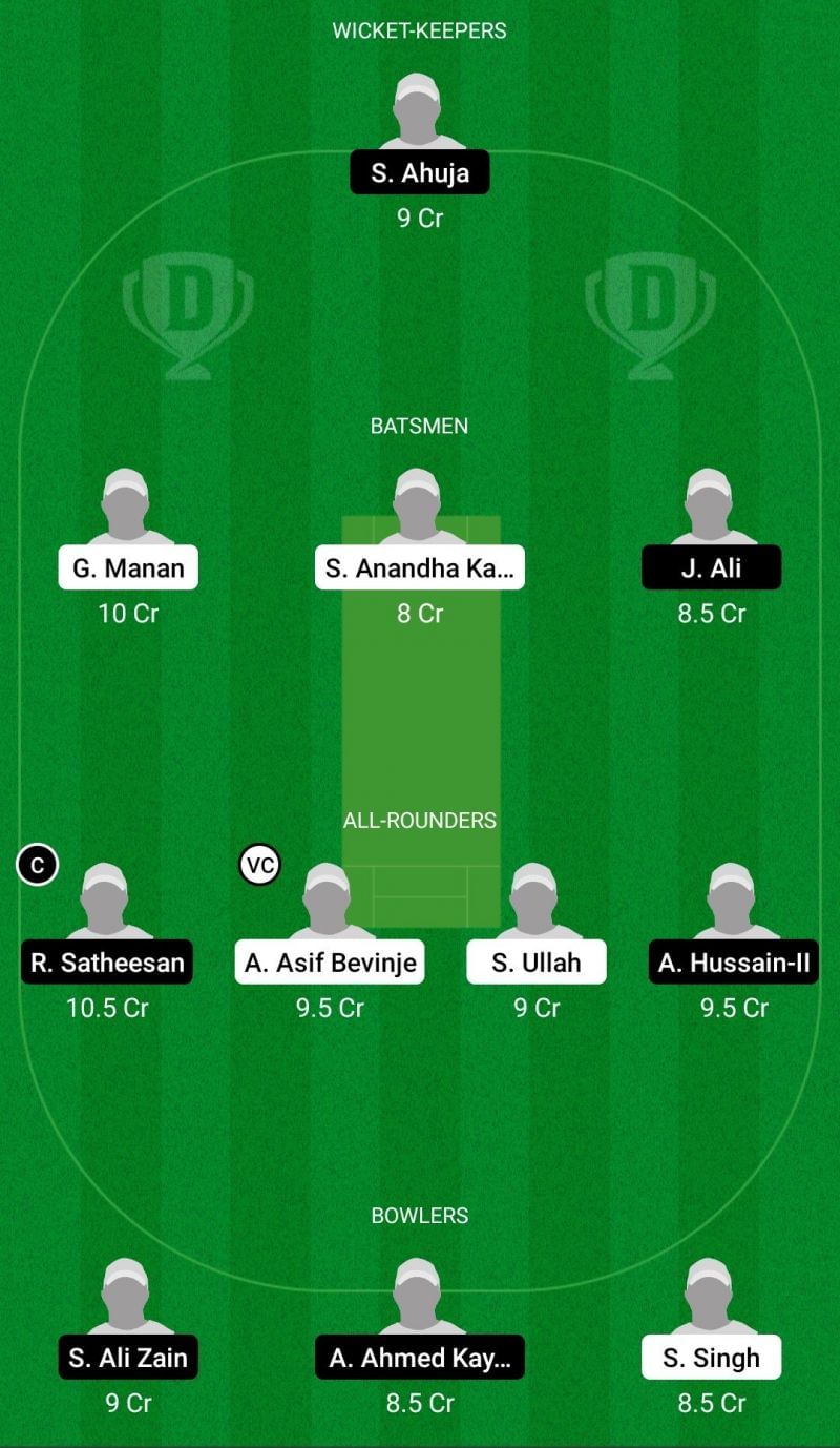 Fantasy Suggestion #1: Stan Ahuja, Gohar Manan, Anandha Karthikeyan, Ali Jawad, Ramesh Satheesan, Abdul Asif, Saeed Ullah, Ali Hussain, Ali Zain, Aftab Kayani, Sukhbinder Singh
