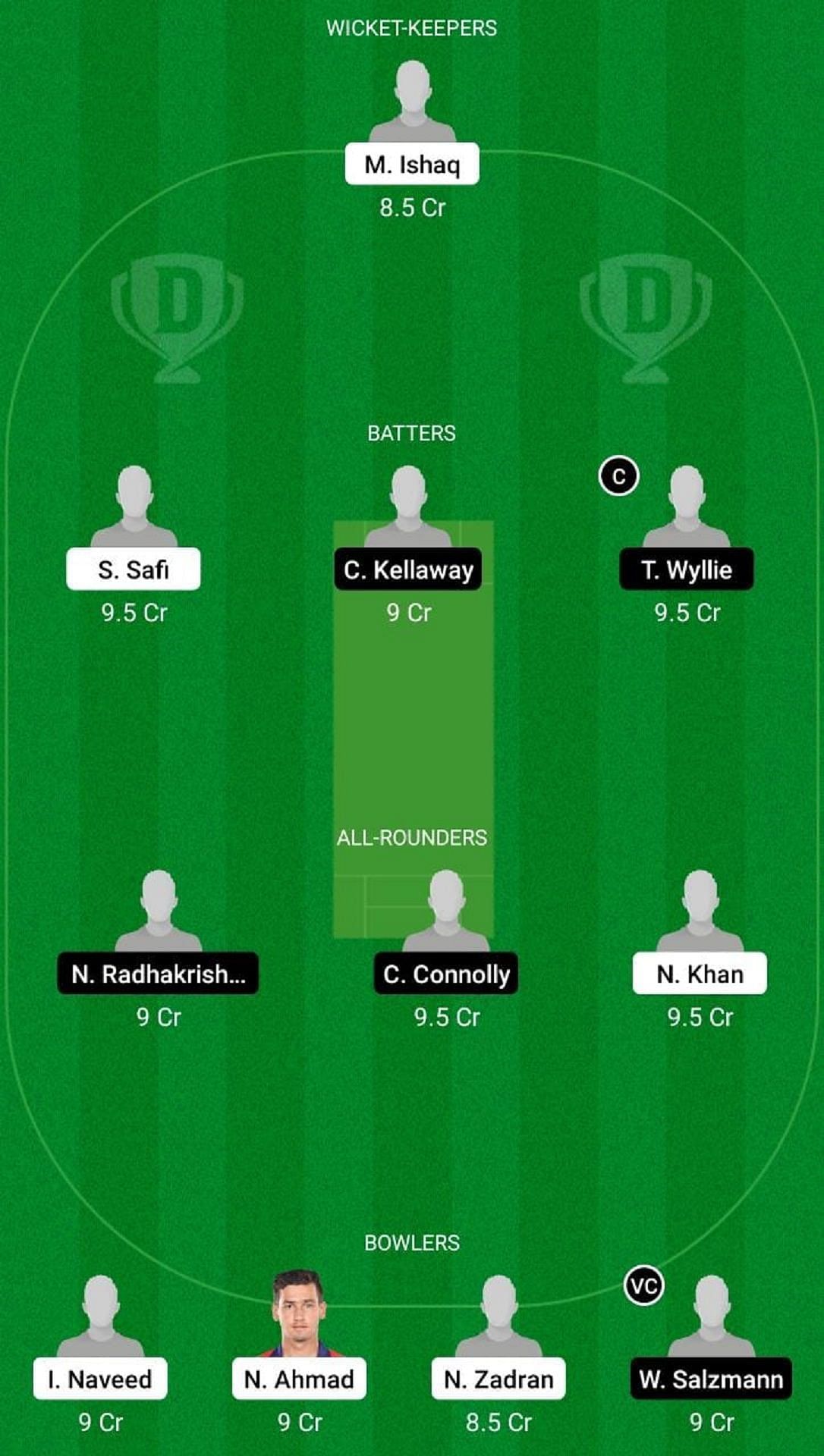 Fantasy Suggestion #2: M Ishaq, T Wyllie, S Safi, C Kellaway, N Radhakrishnan, N Khan, C Connolly, N Ahmad, I Naveed, W Salzmann, N Zadran