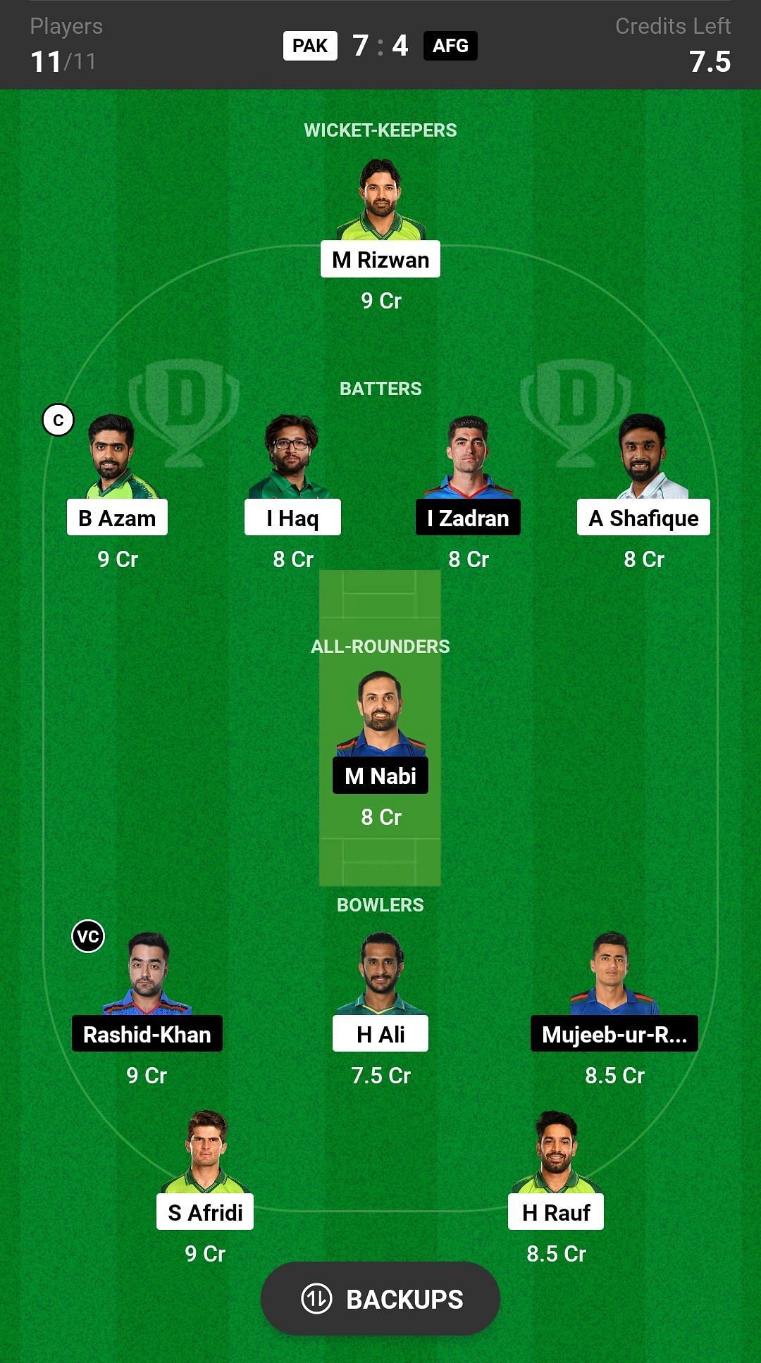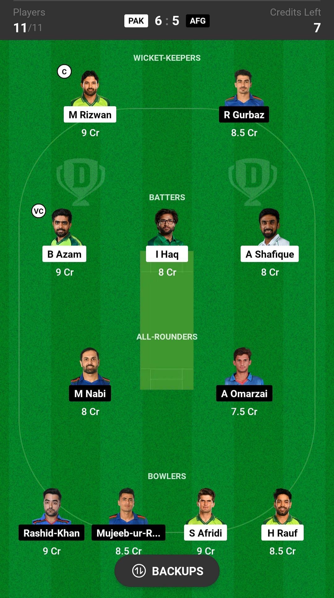 AFG vs PAK match captain and vice-captain choices