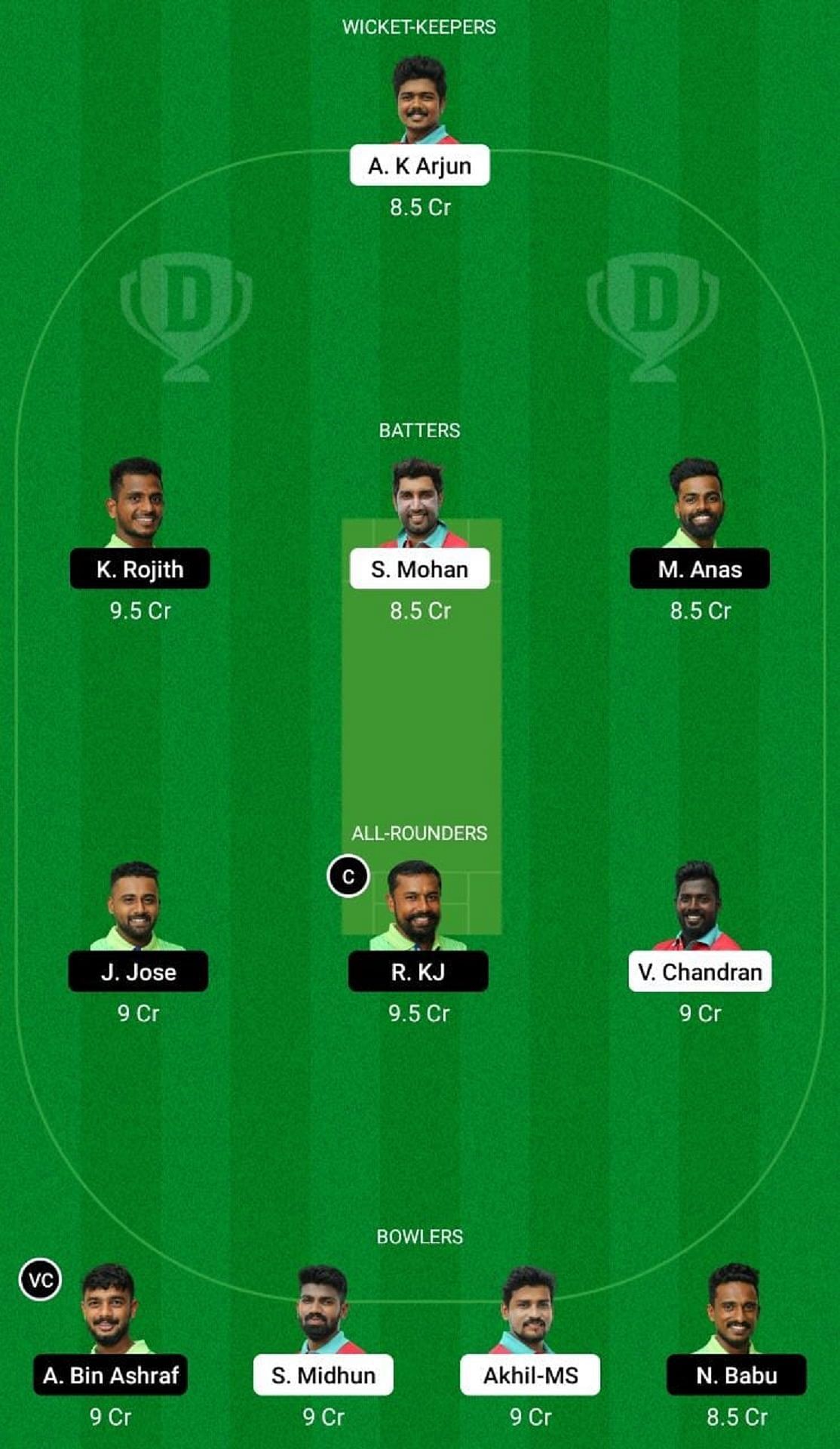 Fantasy Suggestion #1: A K Arjun, K Rojith, M Anas, S Mohan, Rakesh KJ, J Jose, V Chandran, A Bin Ashraf, S Midhun, Akhil MS, N Babu