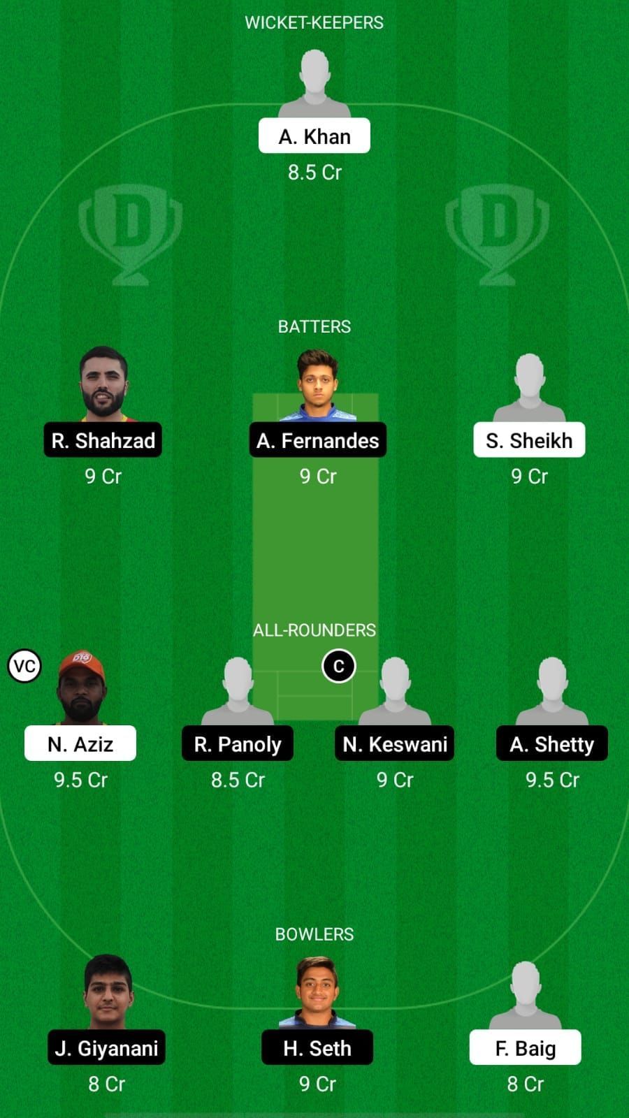 Fantasy Suggestion #2: Adnan Khan, Rameez Shahzad, Ahaan Fernandes, Shahrukh Sheikh, Nasir Aziz, Ronak Panoly, Nilansh Keswani, Adithya Shetty, Jash Giyanani, Harshit Seth, Faisal Baig.