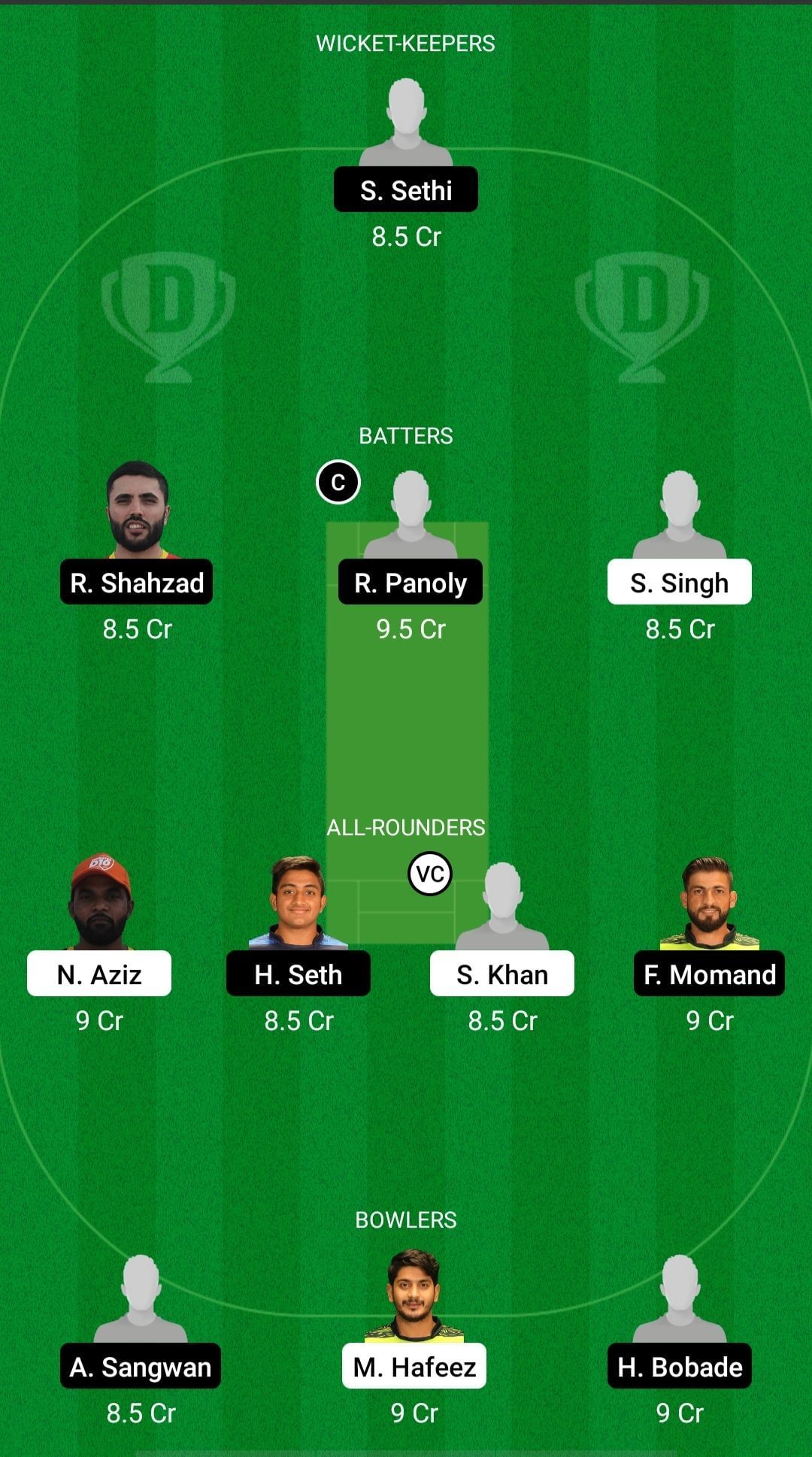 Captain: Ronak Panoly. Vice-captain: Shahnawaz Khan.