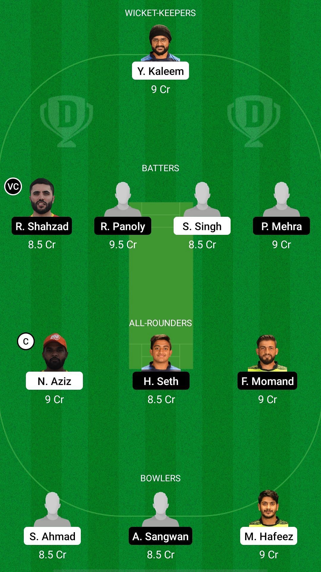 Fantasy Suggestion #1: Yasir Kaleem, Rameez Shahzad, Ronak Panoly, Sandeep Singh, Punya Mehra, Nasir Aziz, Harshit Seth, Muhammad Farooq, Sultan Ahmed, Ankur Sangwan, Hafeez ur Rehman.