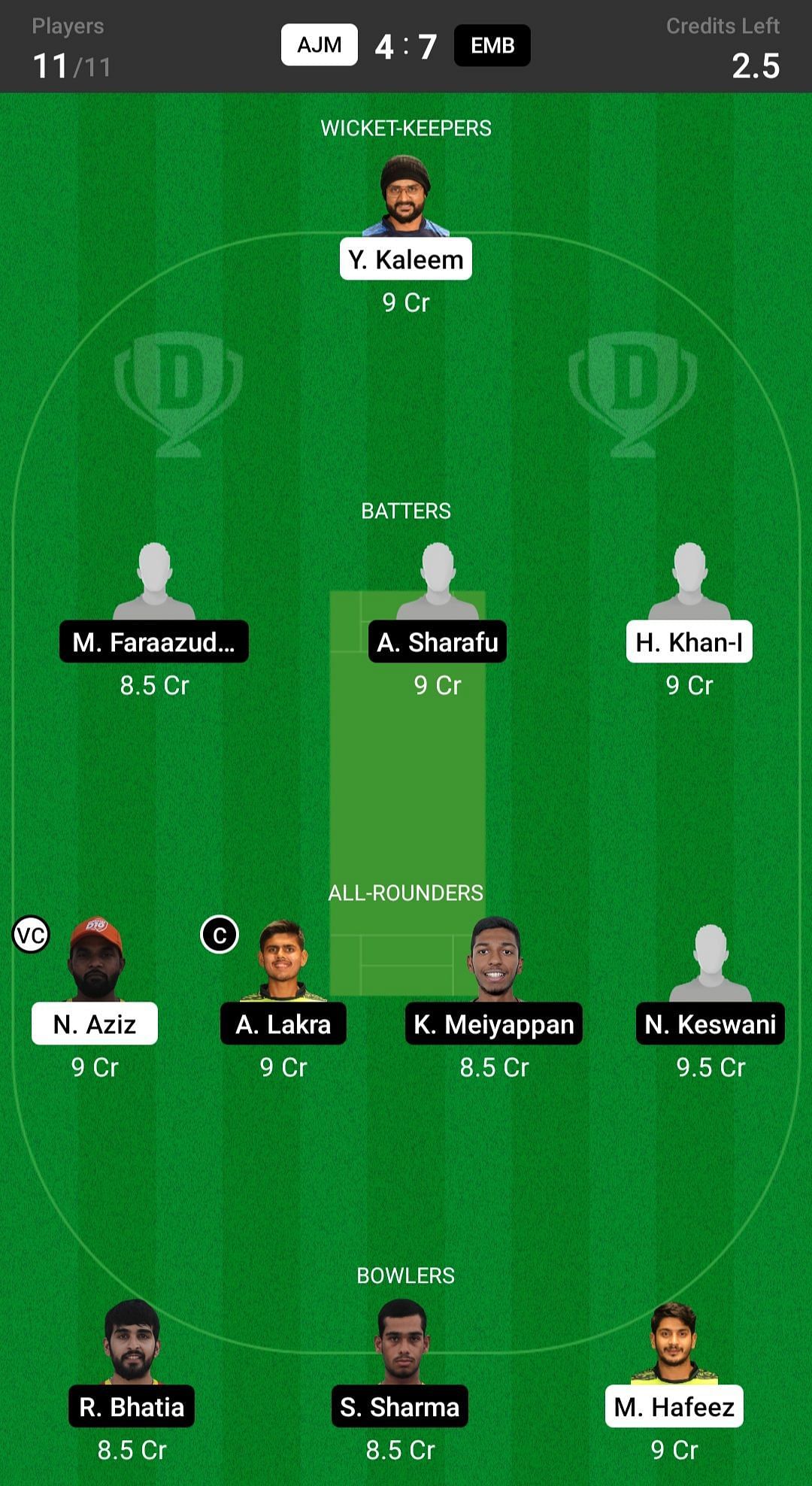 Top players to pick in AJM vs EMB Dream11 prediction team