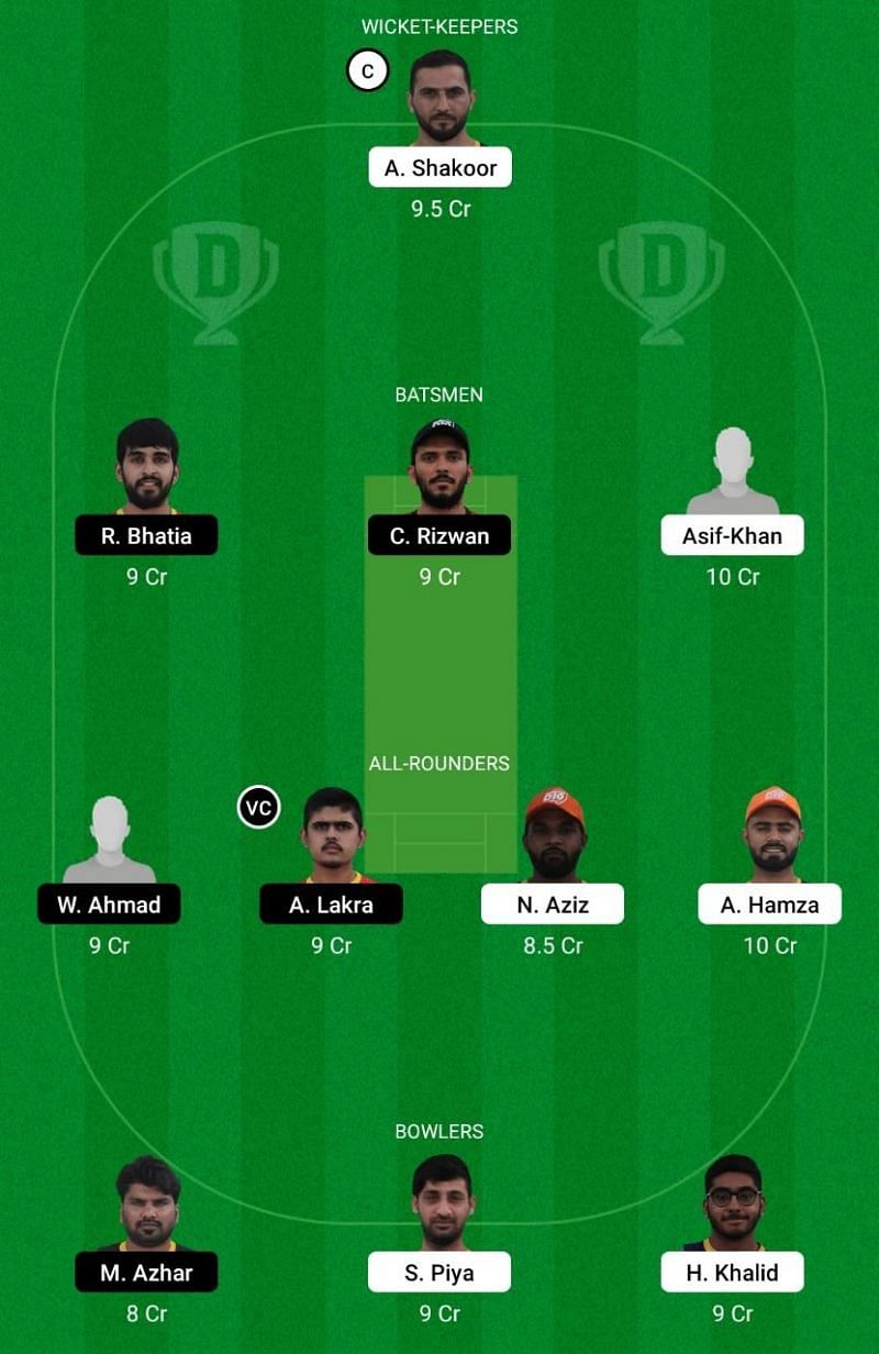 Fantasy Suggestion #1: Abdul Shakoor, Rahul Bhatia, CP Rizwan, Asif Khan, Waheed Ahmad, Aryan Lakra, Nasir Aziz, Ameer Hamza, Mohammad Azhar, Sheraz Piya, Hassan Khalid