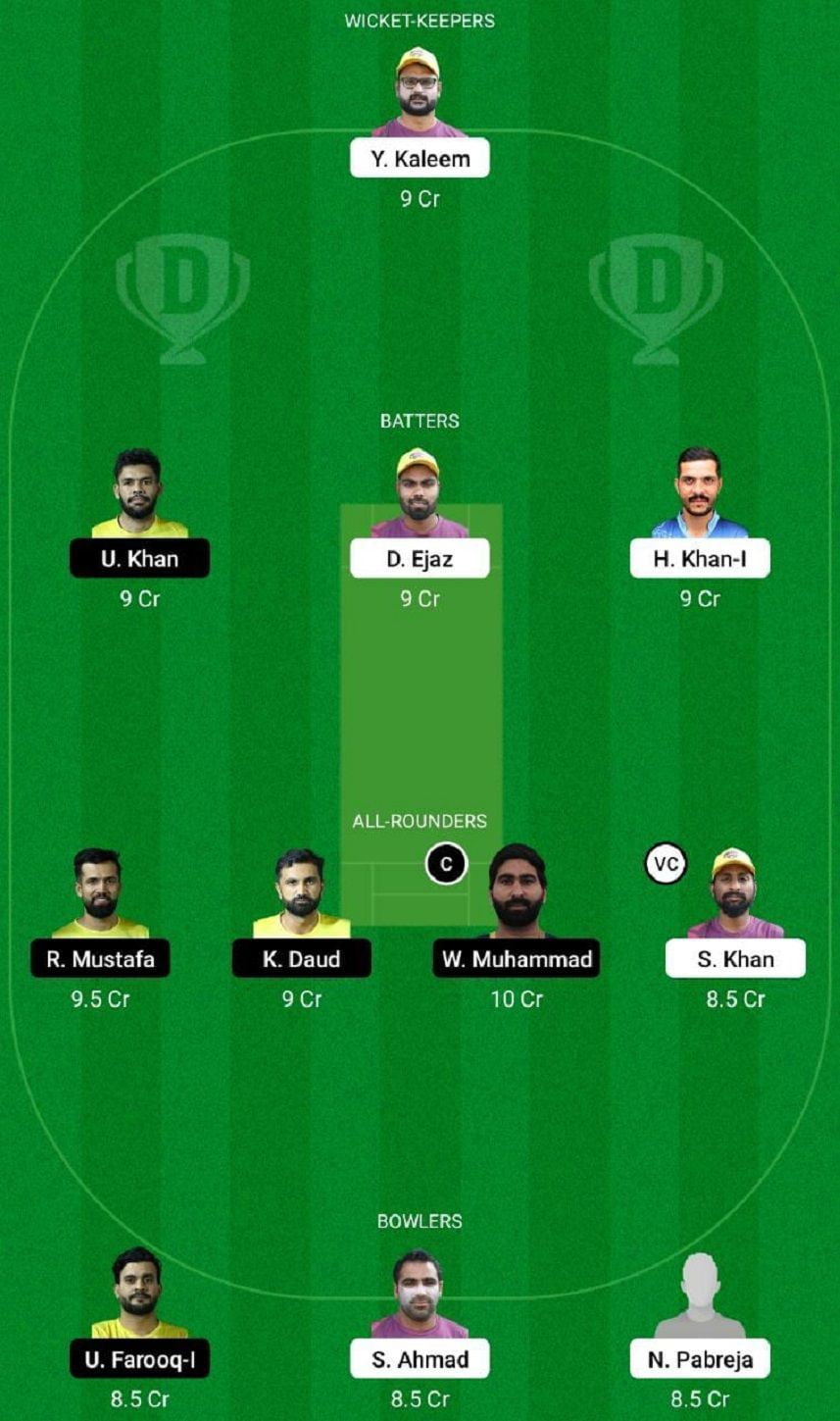 Fantasy Suggestion #1: Y Kaleem, U Khan, D Ejaz, H Khan, R Mustafa, K Daud, W Muhammad, S Khan, U Farooq, S Ahmad and N Pabreja.