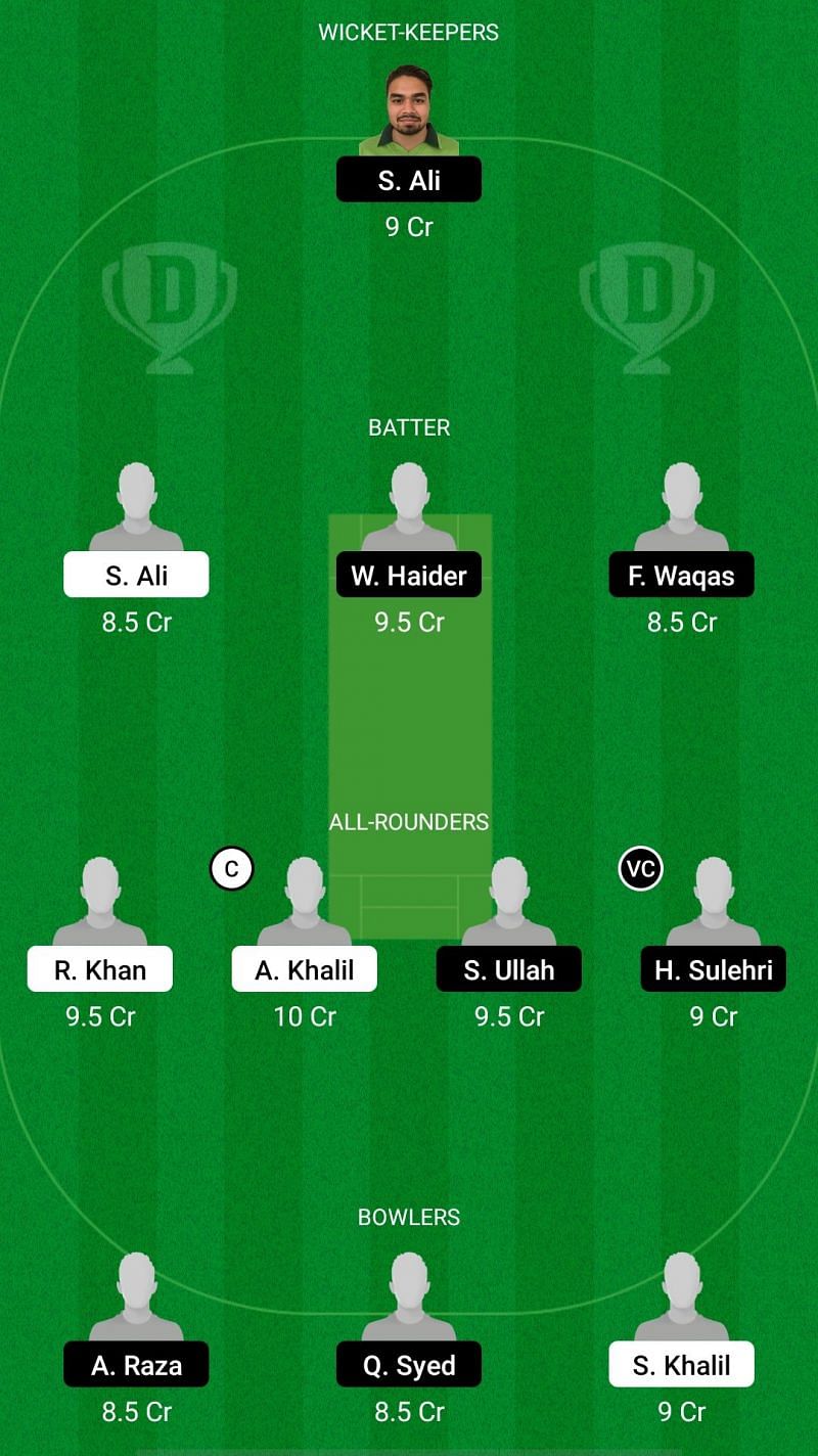 Fantasy Suggestion #1: Share Ali, Shahed Ali, Waqas Haider, Fahad Waqas, Rahel Khan, Azam Khalil, Sweed Ullah, Hamid Sulehri, Sami Khalil, Ajmal Raza, Qambber Syed.