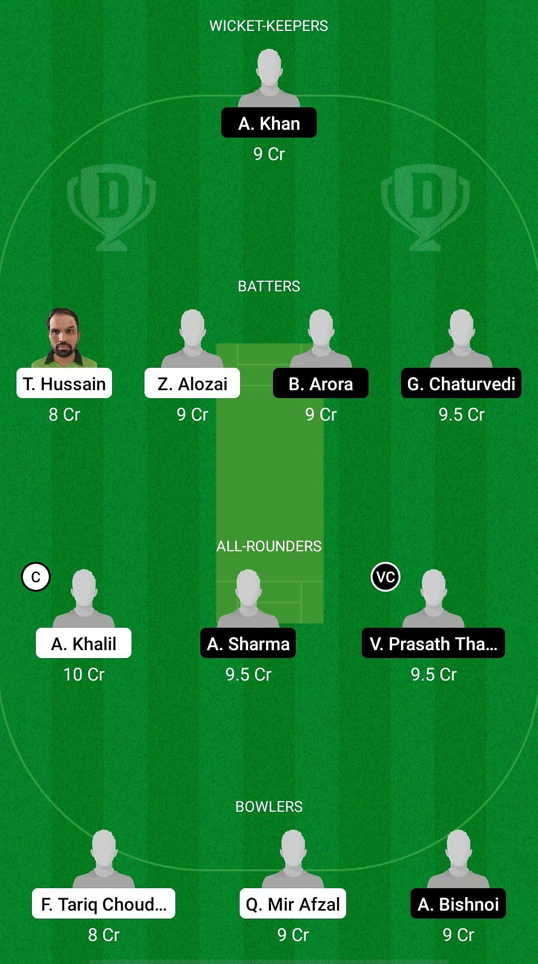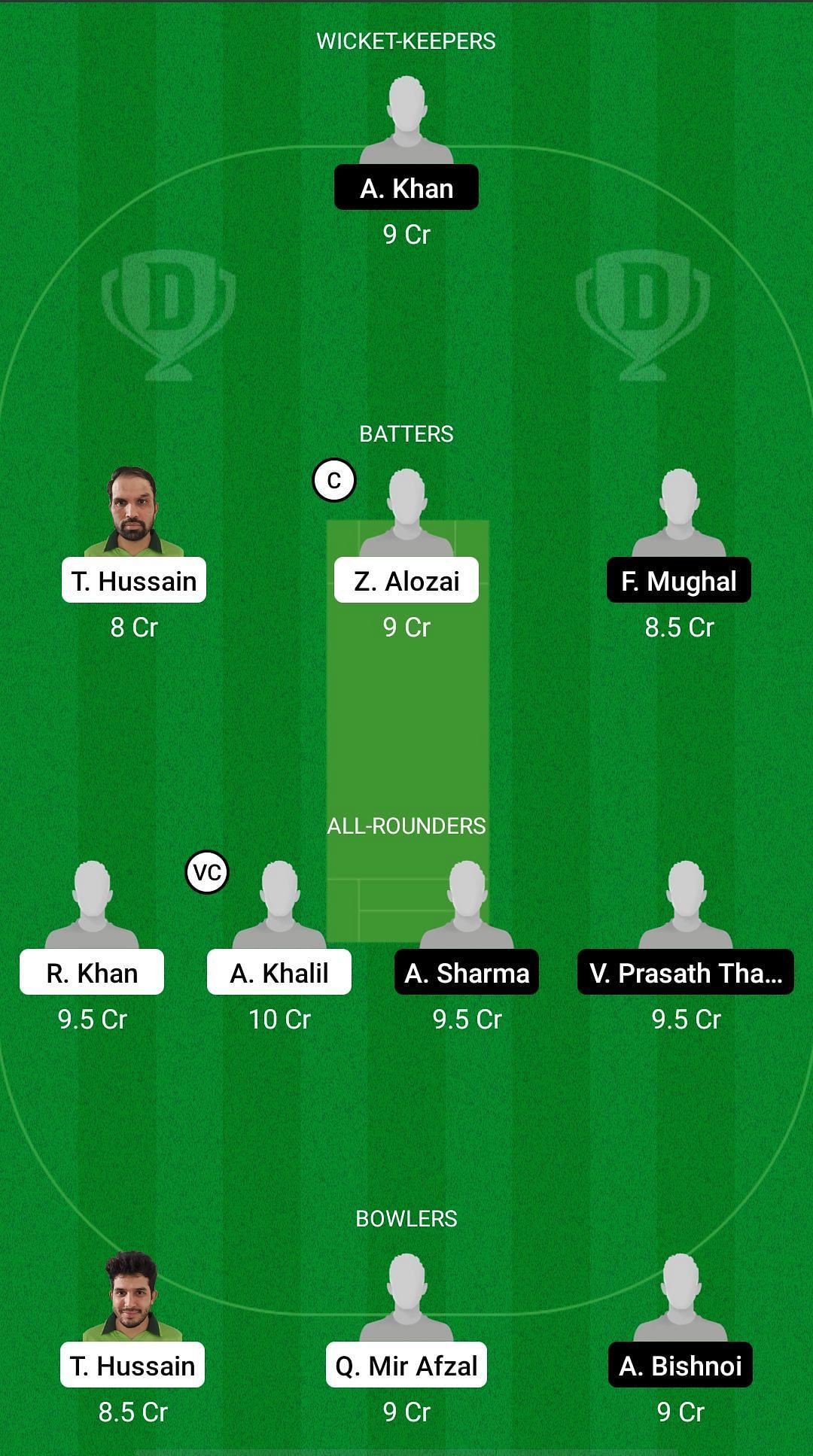 Fantasy Suggestion #1: Aaftab Khan, Taj Hussain, Ziakhan Alozai, Bikram Arora, Gopal Chaturvedi, Azam Khalil, Amar Sharma, Varun Prasath, Faseeh Choudhary, Qudratullah Mir Afzal, Ashok Bishnoi.