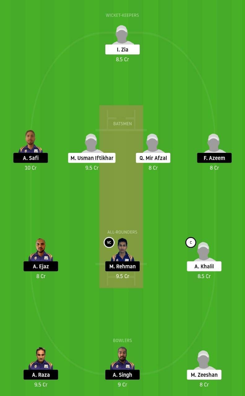 Fantasy Suggestion #1: I Zia, A Safi, M Usman, F Azeem, Q Mir Afzal, F Azeem, A Khalil, M Rehman, A Ejaz, A Raza, A Singh, M Zeeshan