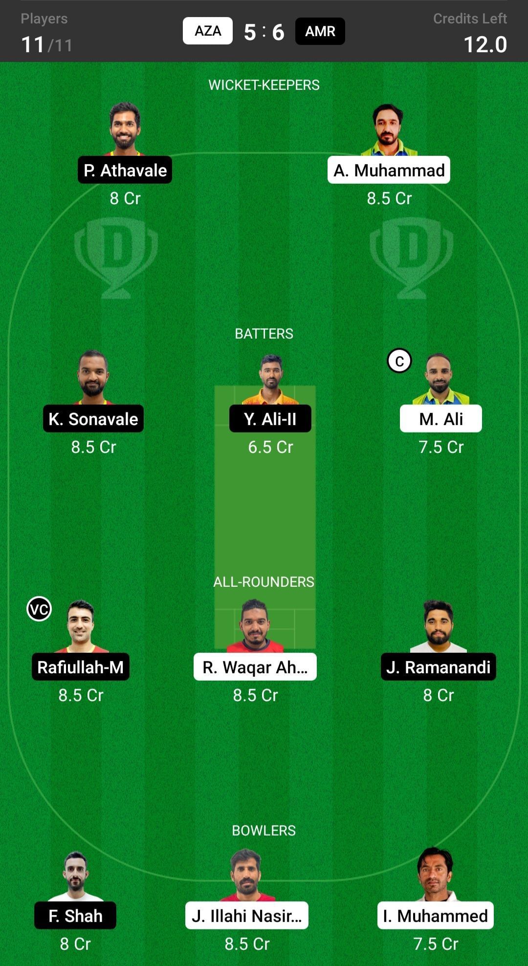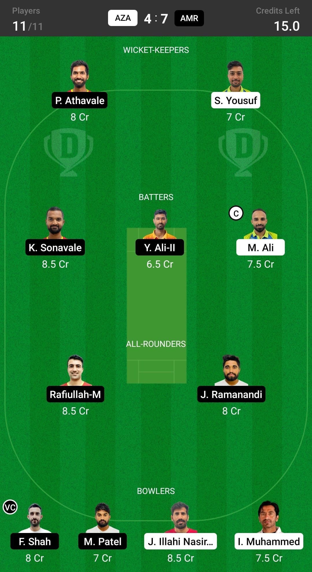 AMR vs AZA match captain and vice-captain choices