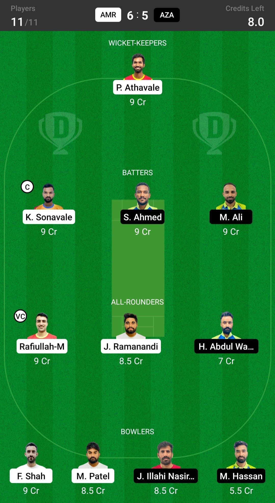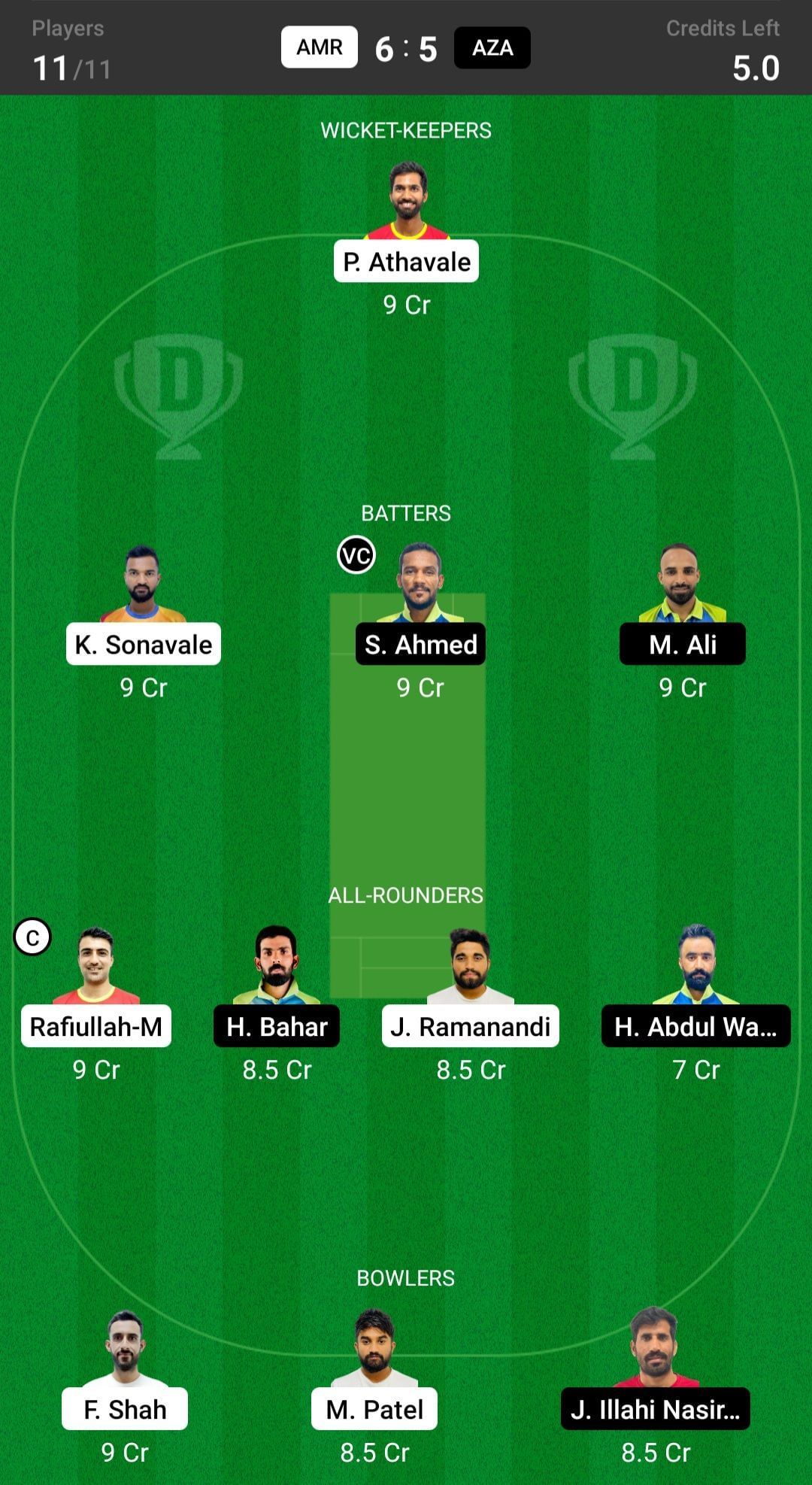 AMR vs AZA match captain and vice-captain choices
