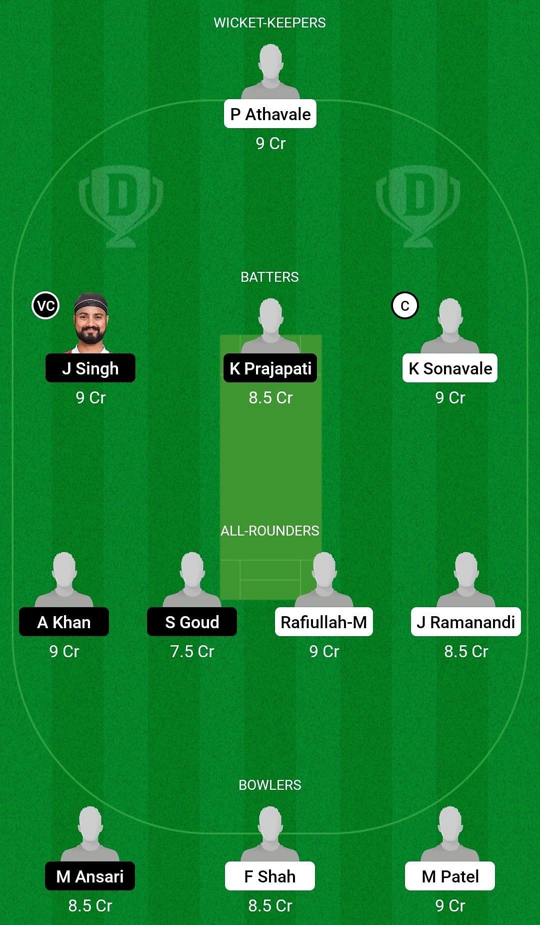 Suraj Kumar (wk), Jatinder Singh, Hashir Anwar Dafedar, Shoaib Khan, Kashyapkumar Prajapati, Ayan Khan, Sandeep Goud, Munis Ansari, Siddharth Bukkapatnam, Akash Mohite, Samay Shrivastava