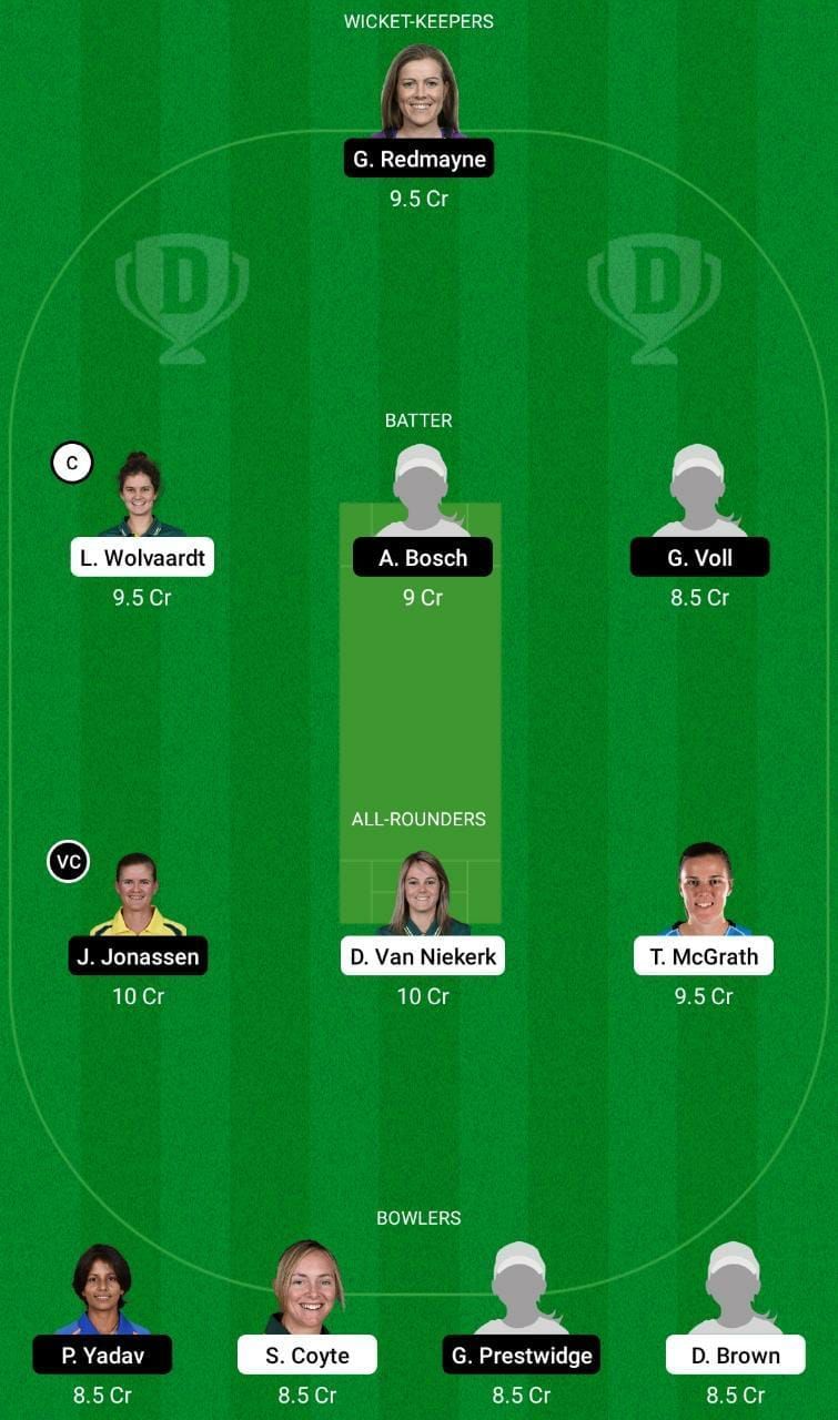 Fantasy Suggestion #1: Georgia Redmayne, Laura Wolvaardt, Anneke Bosch, Georgia Voll, Jess Jonassen, Dane van Niekerk, Tahlia McGrath, Poonam Yadav, Sarah Coyte, Darcie Brown and Georgia Prestwidge.