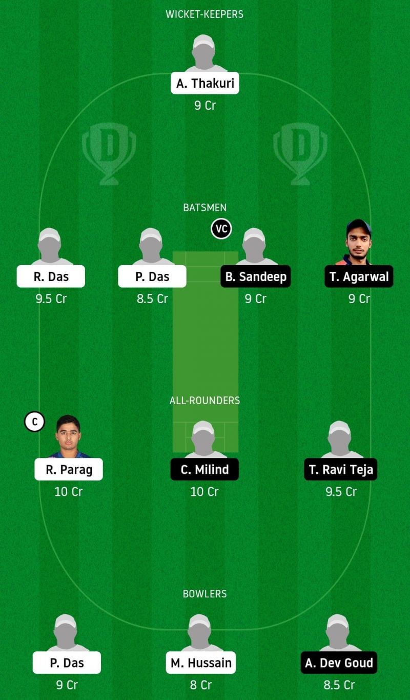 Fantasy Suggestion #1: Abhishek Thakuri, Rishav Das, Pallavkumar Das, Bavanaka Sandeep, Tanmay Agarwal, Riyan Parag, Chama V Milind, T Ravi Teja, Pritam Das, Mukhtar Hussain, Ajay Dev Goud.