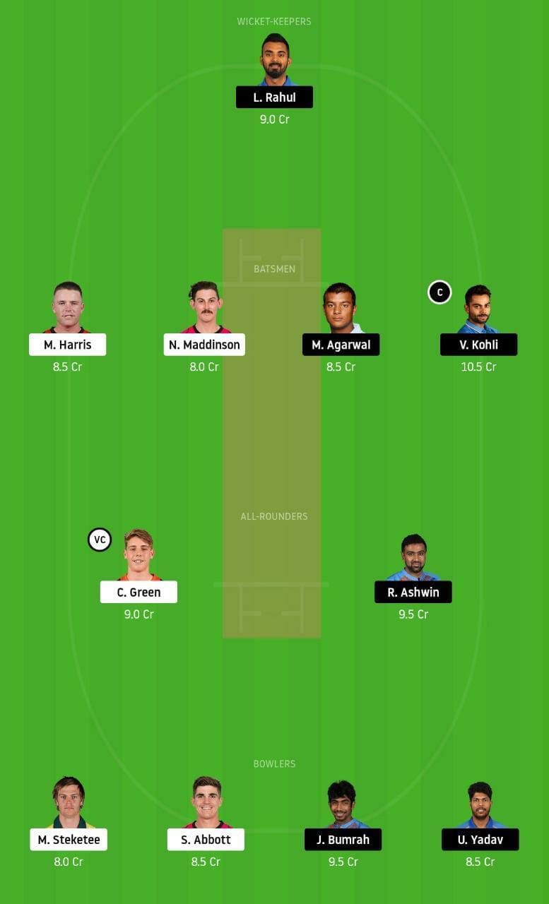 Fantasy Suggestion #1: KL Rahul, Marcus Harris, Nic Maddinson, Mayank Agarwal, Virat Kohli, Cameron Green, Ravi Ashwin, Mark Steketee, Umesh Yadav, Jasprit Bumrah and Sean Abbott
