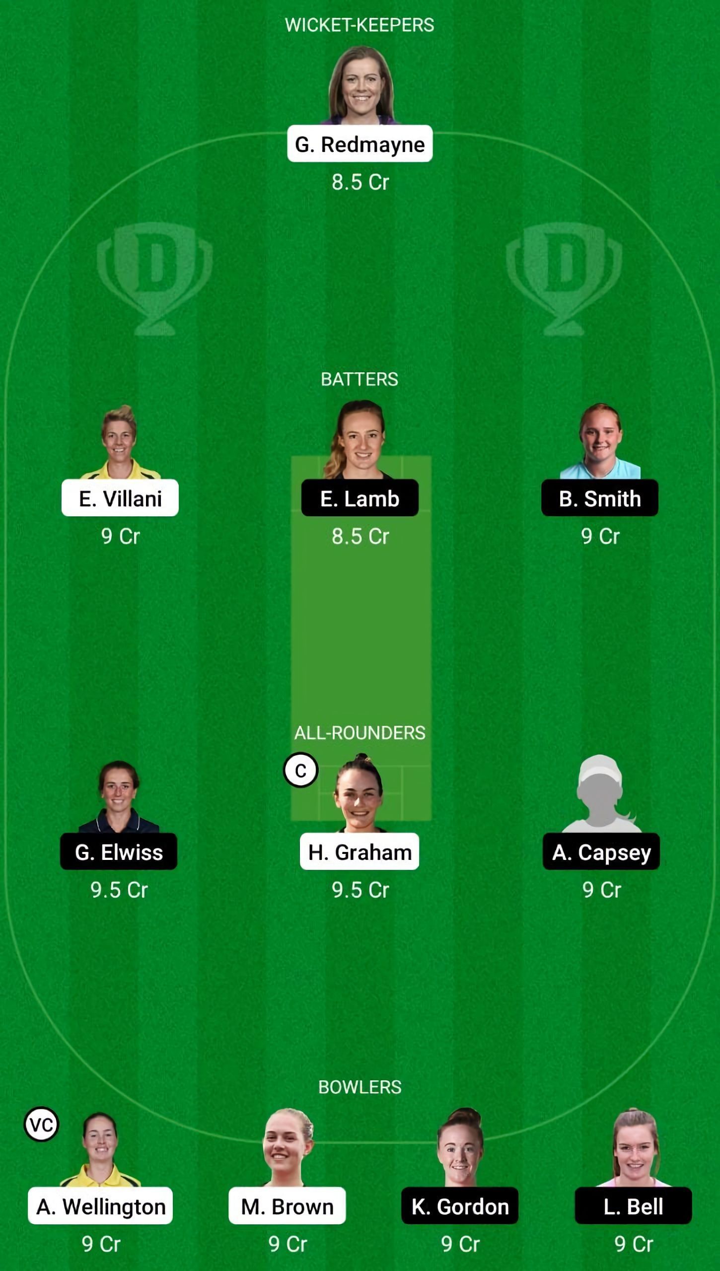 Captain: Elyse Villani, Vice-Captain: Georgia Redmayne